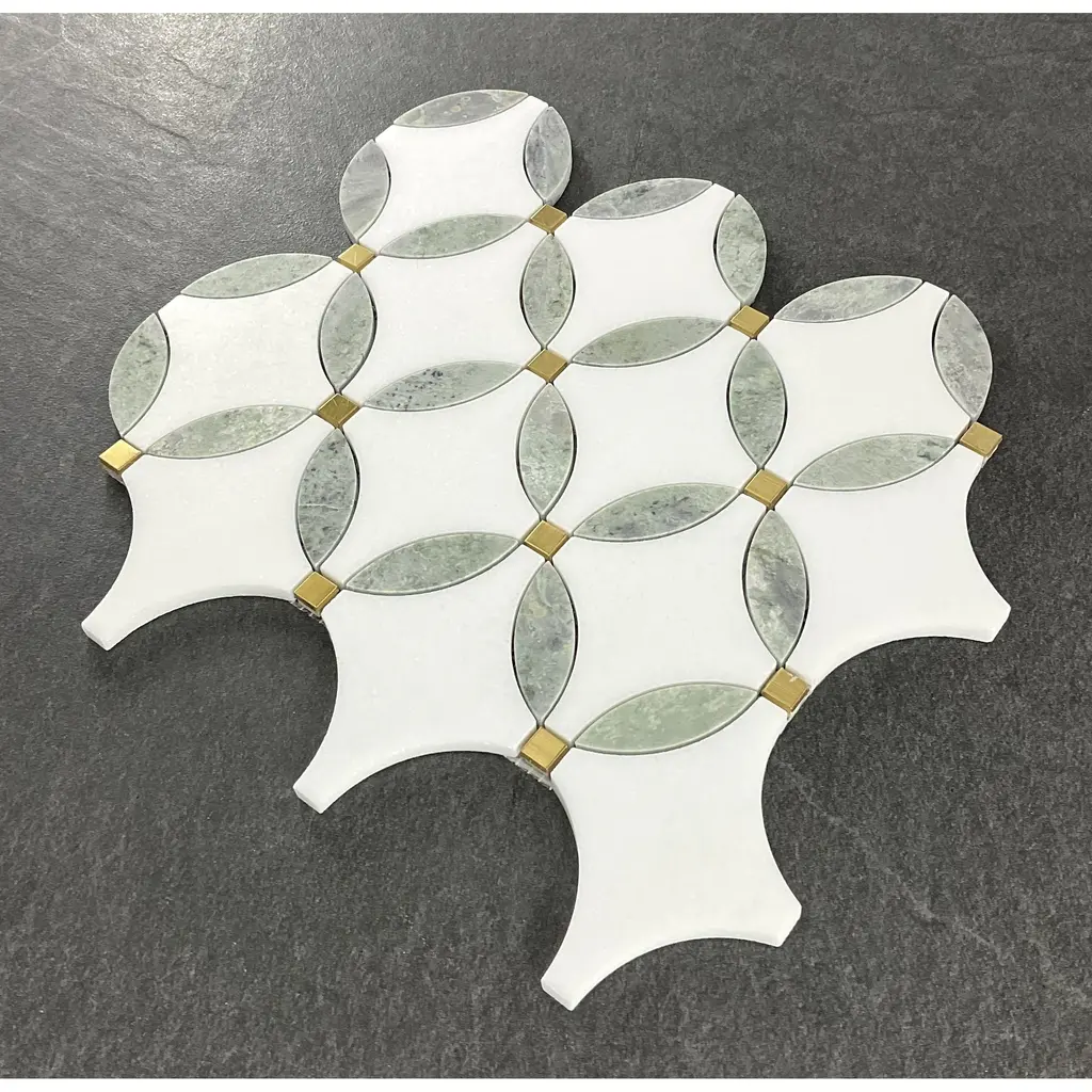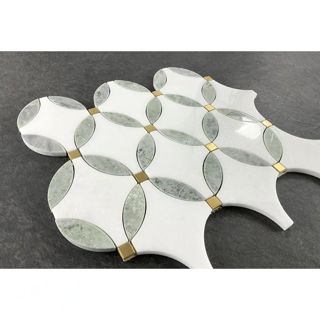 Waterjet Marble And Metal Wall Mosaic Tile - Case (10 Sheets) - Case (10 Sheets) - Thassos White - Jade Green - Gold Metal