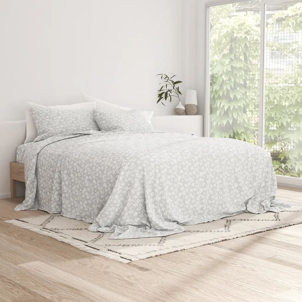 Our double-brushed patterned microfiber sheet set is super soft to the touch and wrinkle-resistant. We use premium yarns that are twice as durable as cotton, which means less risk of rips and wear. Naturally hypoallergenic, our sheets are ideal for sensitive skin and those with allergies. Available in a variety of unique designer prints and patterns, including florals, geometrics, and stripes, making it the perfect new addition to your room!