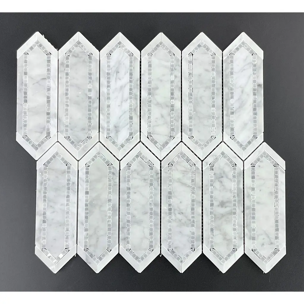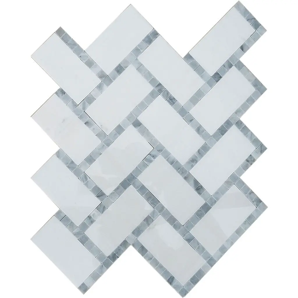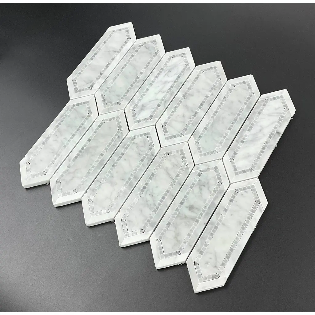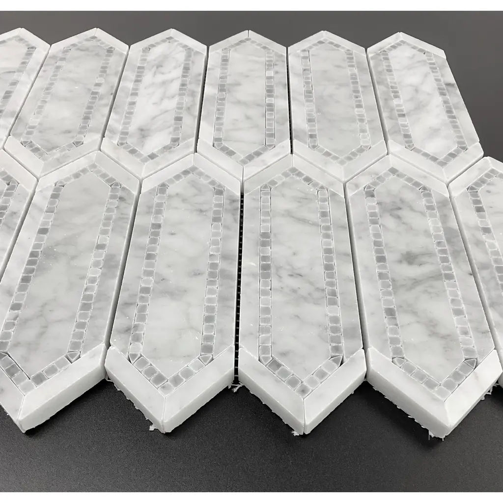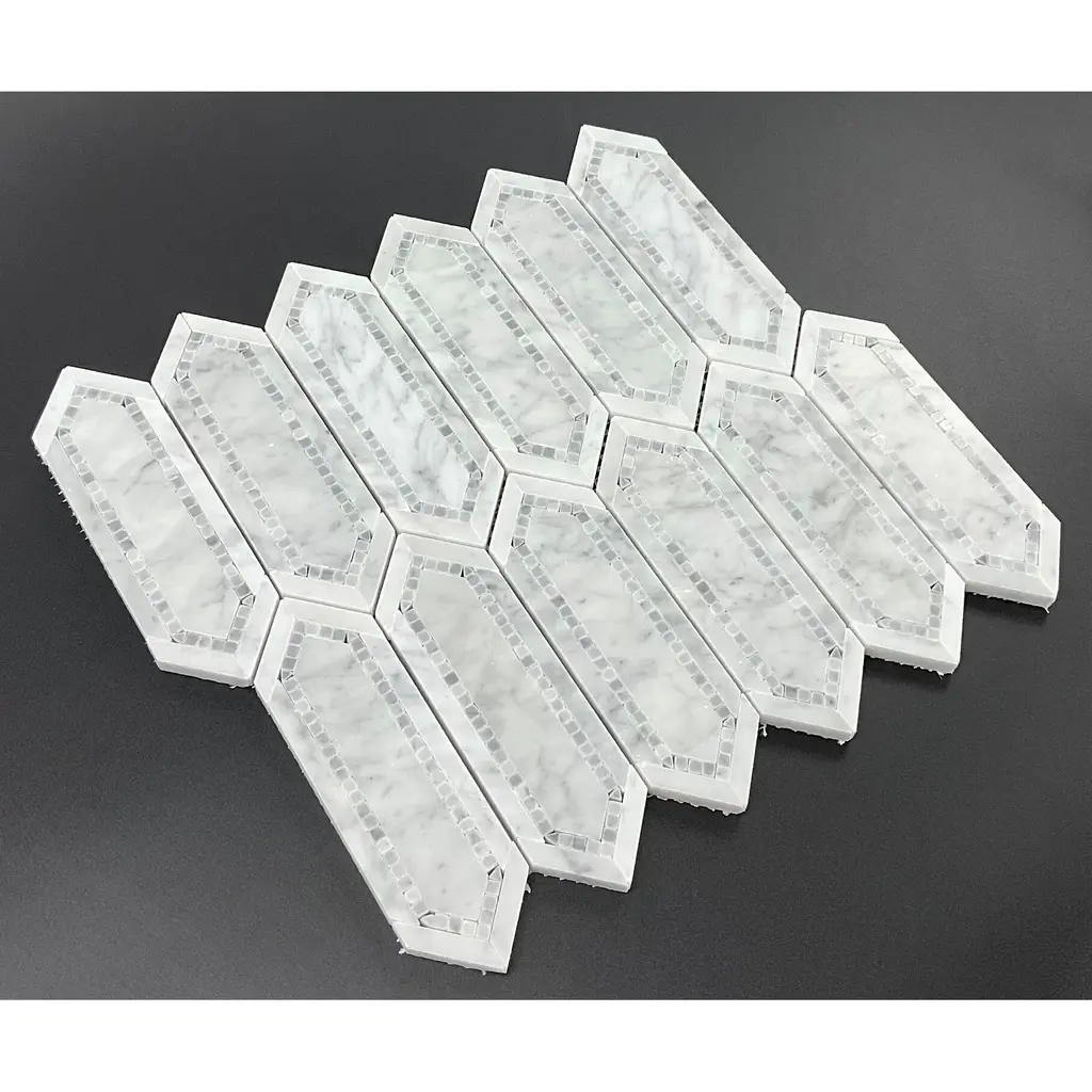White Carrara And Dark Grey Long Honeycomb Marble Mosaic Tiles - Case (5 Sheets) - Case (5 Sheets) - White Carrara / Dark Grey
