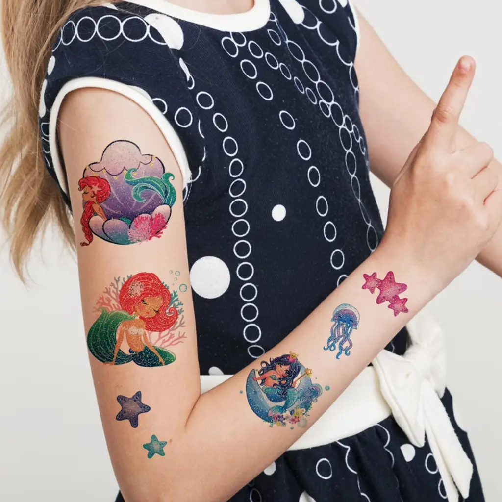 Wrapables Waterproof Glitter Temporary Tattoos, Birthday Party Favors And Supplies, Goodie Bag Fillers, 12 Sheets Mermaids