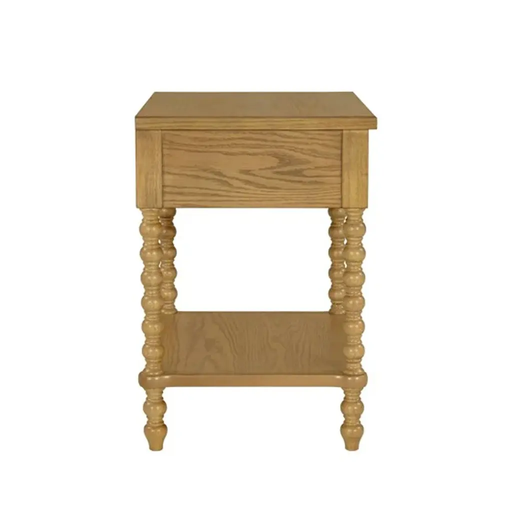 1-Drawer Nightstand With Turned Legs And Bottom Shelf