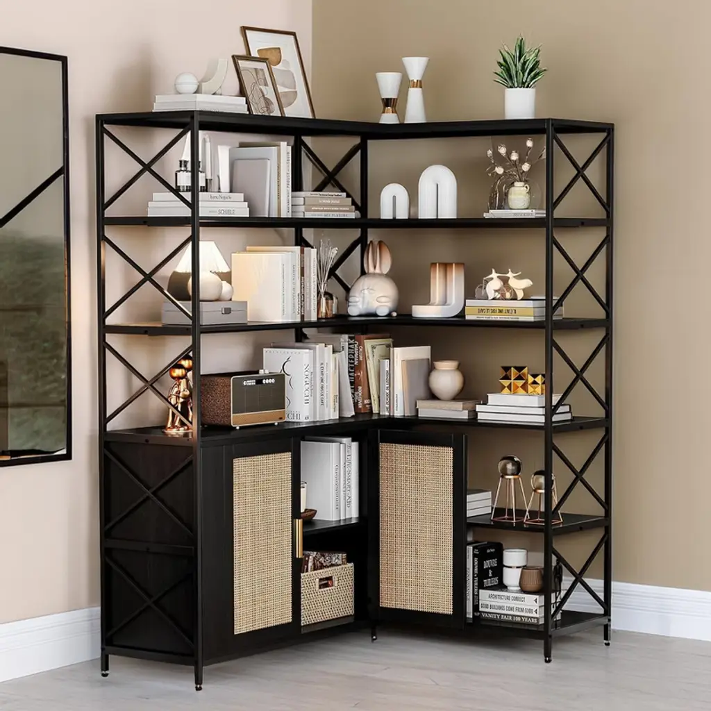 10 Cube Bookshelf, Wooden 3 Tier Bookcase with 5 Iron Legs, Freestanding Organizer Open Display Book Shelf for Home Office, Living Room, Bedroom