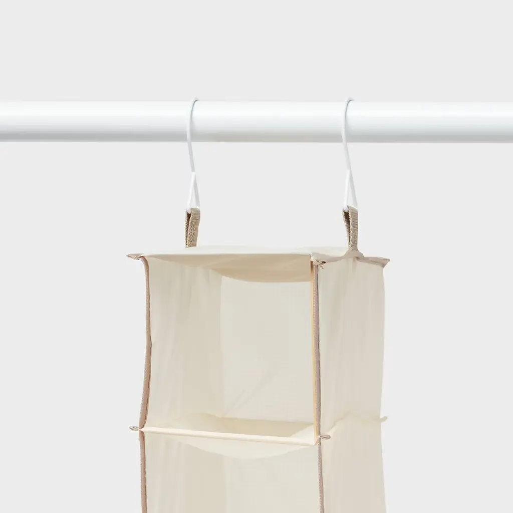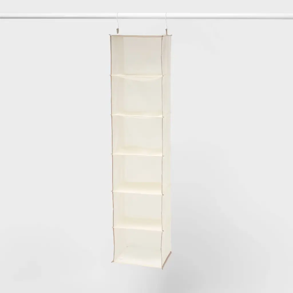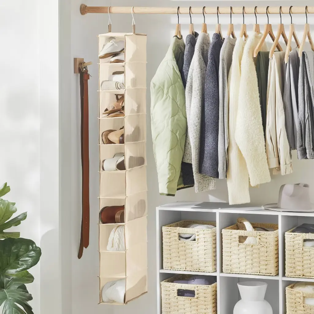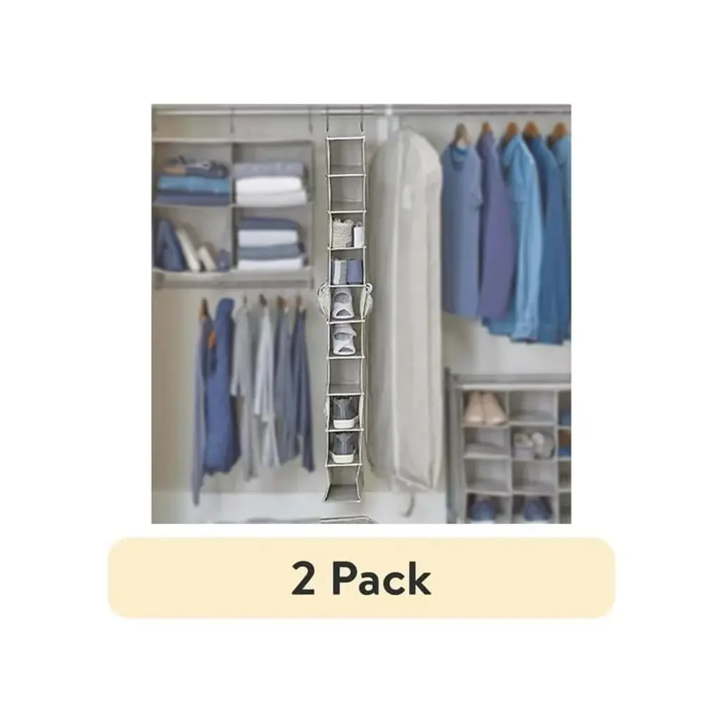 This 10-Shelf Hanging Shoe Storage Organizer from Brightroom™ will help you keep all your favorite shoes neatly organized in your closet. Made from fabric in a neutral tan hue, this hanging organizer features ten shelves designed to hold shoes of all kinds. Great for use in any closet space, the organizer is also equipped with hooks for easy hanging.Brightroom™: See your space in a new light.