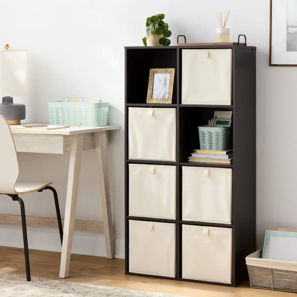 Add a versatile storage option to any space with this 8-Cube Bookshelf from Brightroom™. Made with wood, this bookshelf features eight cube-shaped shelves to help organize your books, magazines and other items, and it's designed in a solid black hue that blends effortlessly with any decor style and color palette. Standing at a height of 24.17 inches, this 8-cube shelf bookcase offers ample storage space for any room.Brightroom™: See your space in a new light.