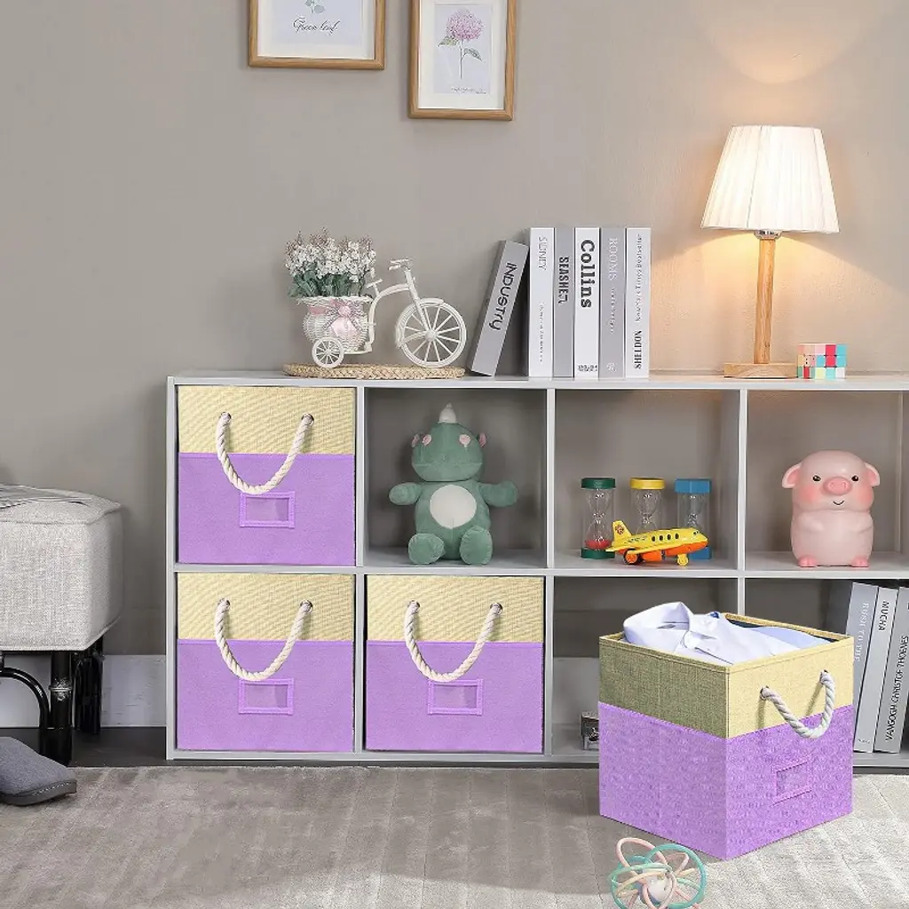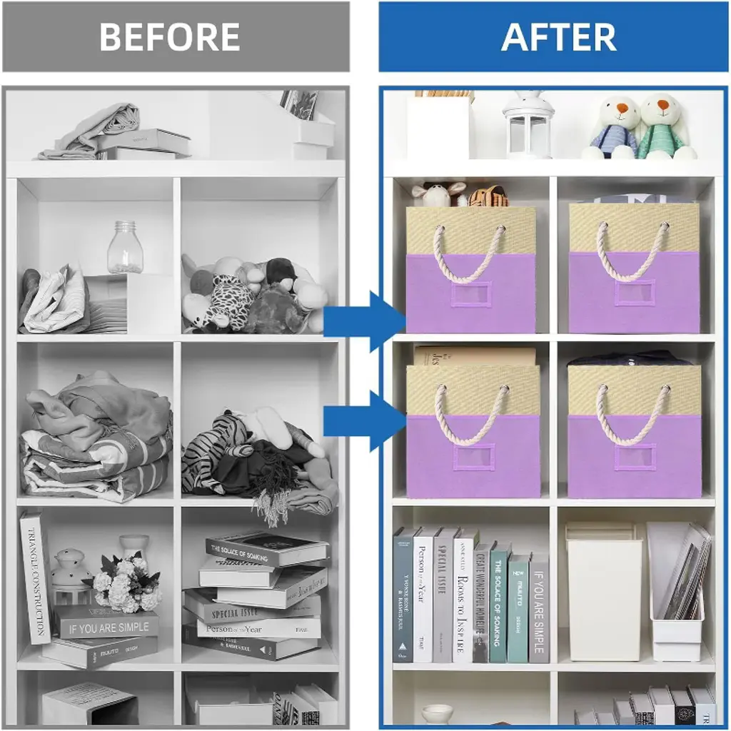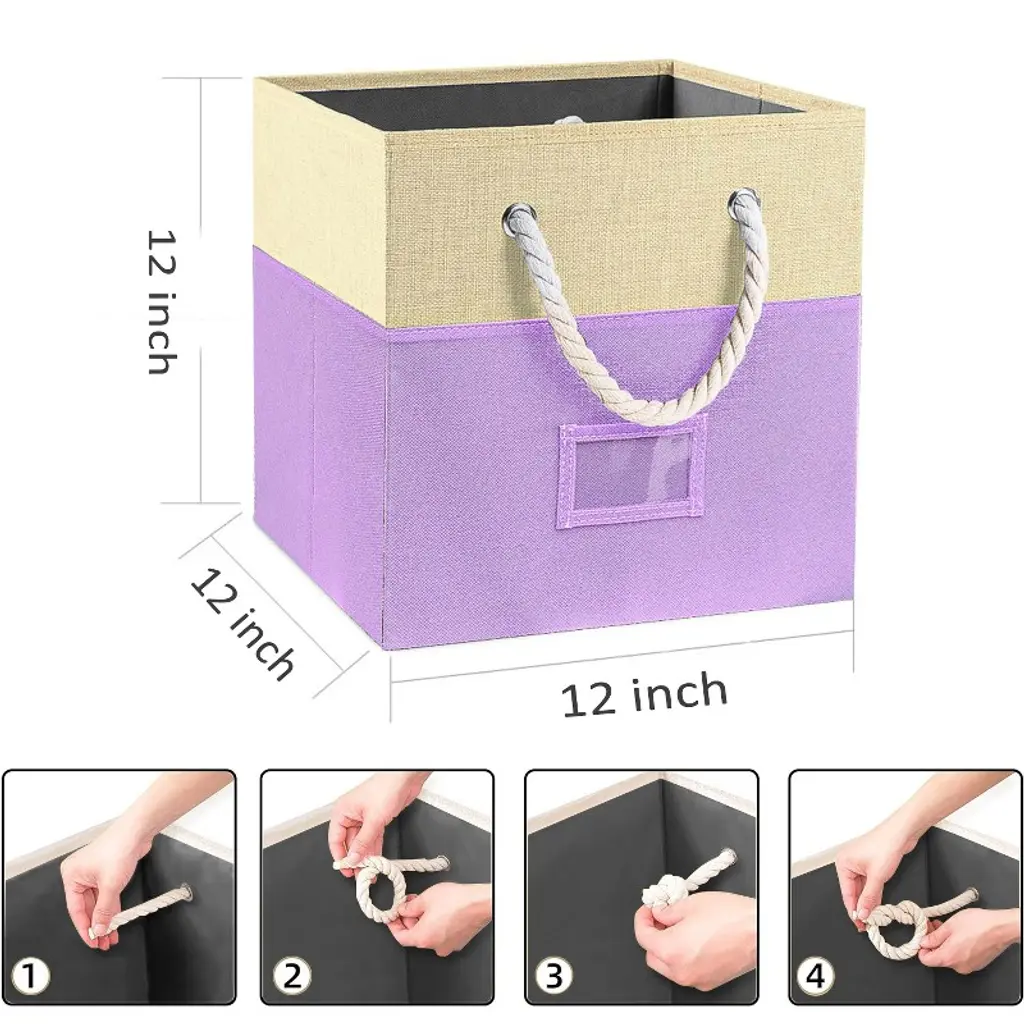 12"foldable Storage Bins,4 Piece Set Fabric Closet Drawers Organizer With Cotton Handles For Organizing Shelf Cabinet,purple