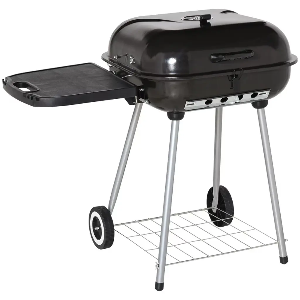 17" Portable Charcoal Grill With Wheels, 2 Side Tables And Bottom Shelf, Bbq With Adjustable Vents On Lid For Picnic, Camping - Steel