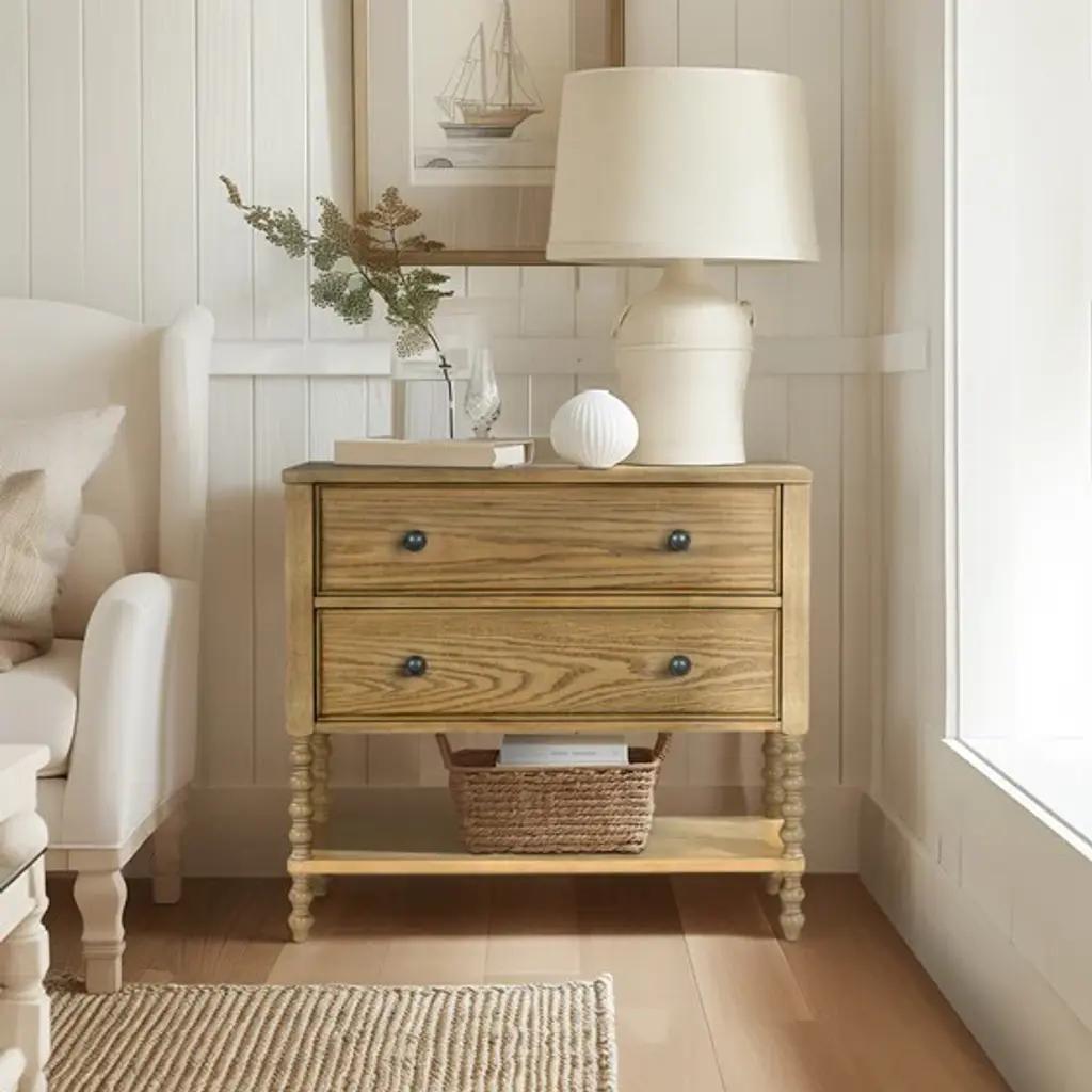 Bring timeless charm to your space with this accent chest, crafted with a solid wood frame for durability and elegance. Featuring two spacious drawers, it offers ample storage for your essentials while keeping your space organized. The traditional design, complete with turned legs, adds a classic touch to any room. Metal-on-metal drawer glides ensure smooth and reliable operation for everyday use. Perfect for bedrooms, living rooms, or entryways, this chest combines functionality with timeless style.