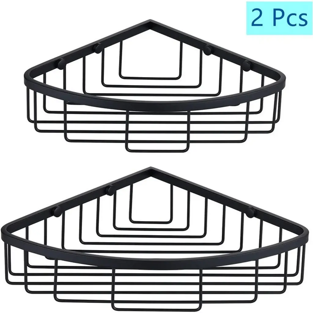 2 Pack Corner Shower Caddy Shelf Organizer, Stainless Steel Heavy Duty Rustproof Shampoo Rack, Wall Mounted Organizer - 2-Pack Set#black