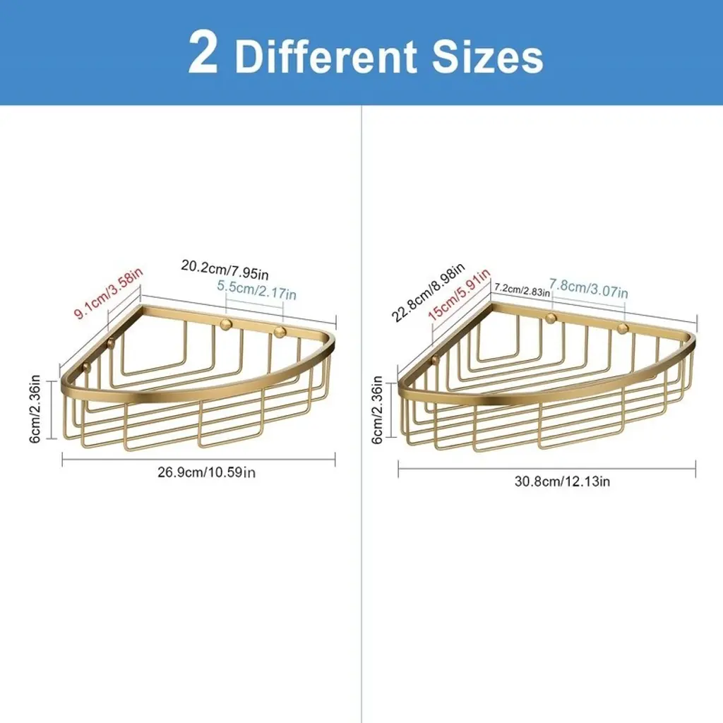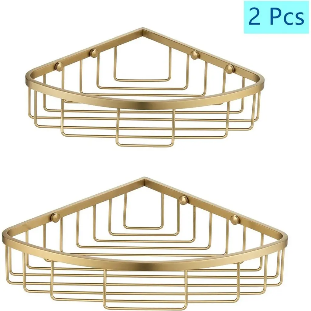2 Pack Corner Shower Caddy Shelf Organizer, Stainless Steel Heavy Duty Rustproof Shampoo Rack, Wall Mounted Organizer - 2-Pack Set#gold
