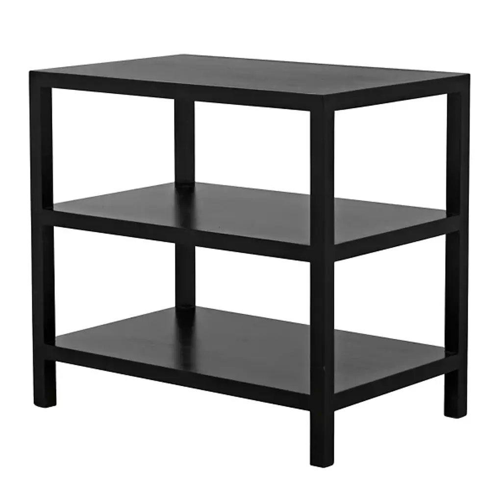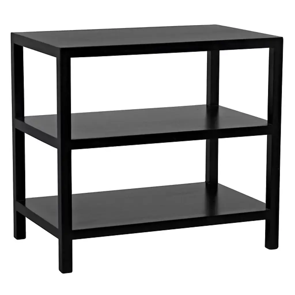 The 2 Shelf Side Table from Noir, with its bold straight lines and exceptional hand-craftsmanship, transforms a seemingly simple design into an elegant statement piece. Made from solid mahogany, the table's clean, minimalist aesthetic is elevated by its high-quality construction. This minimalist style allows it to blend with a variety of interior styles. Whether used as a functional surface or a decorative accent, this table adds sophistication and timeless appeal to any space.