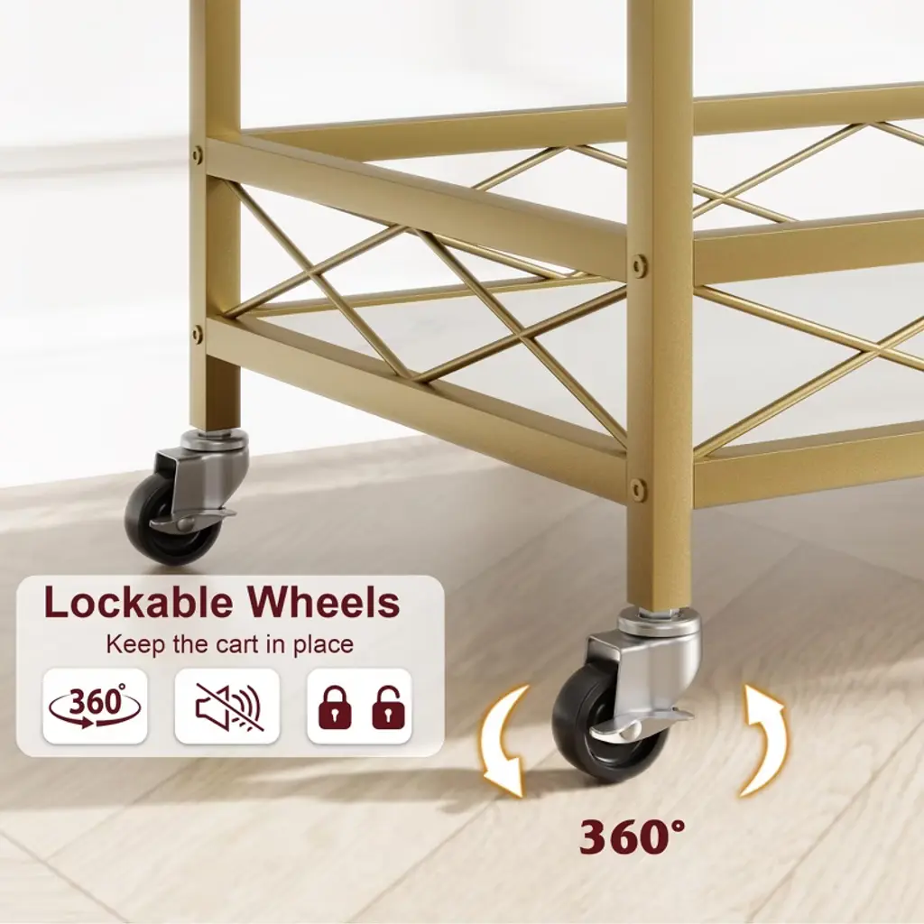 Gold Bar Cart, 2 Tier Bar Carts for The Home, Home Bar & Serving Carts, Bar Carts with Wheels, White Marble Finish Wood Shelf, Wine Rack & Glass Holder for Kitchen, Living Room, Dining Room