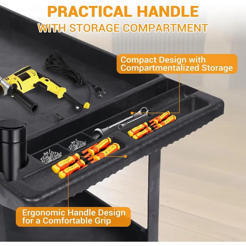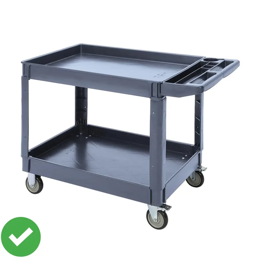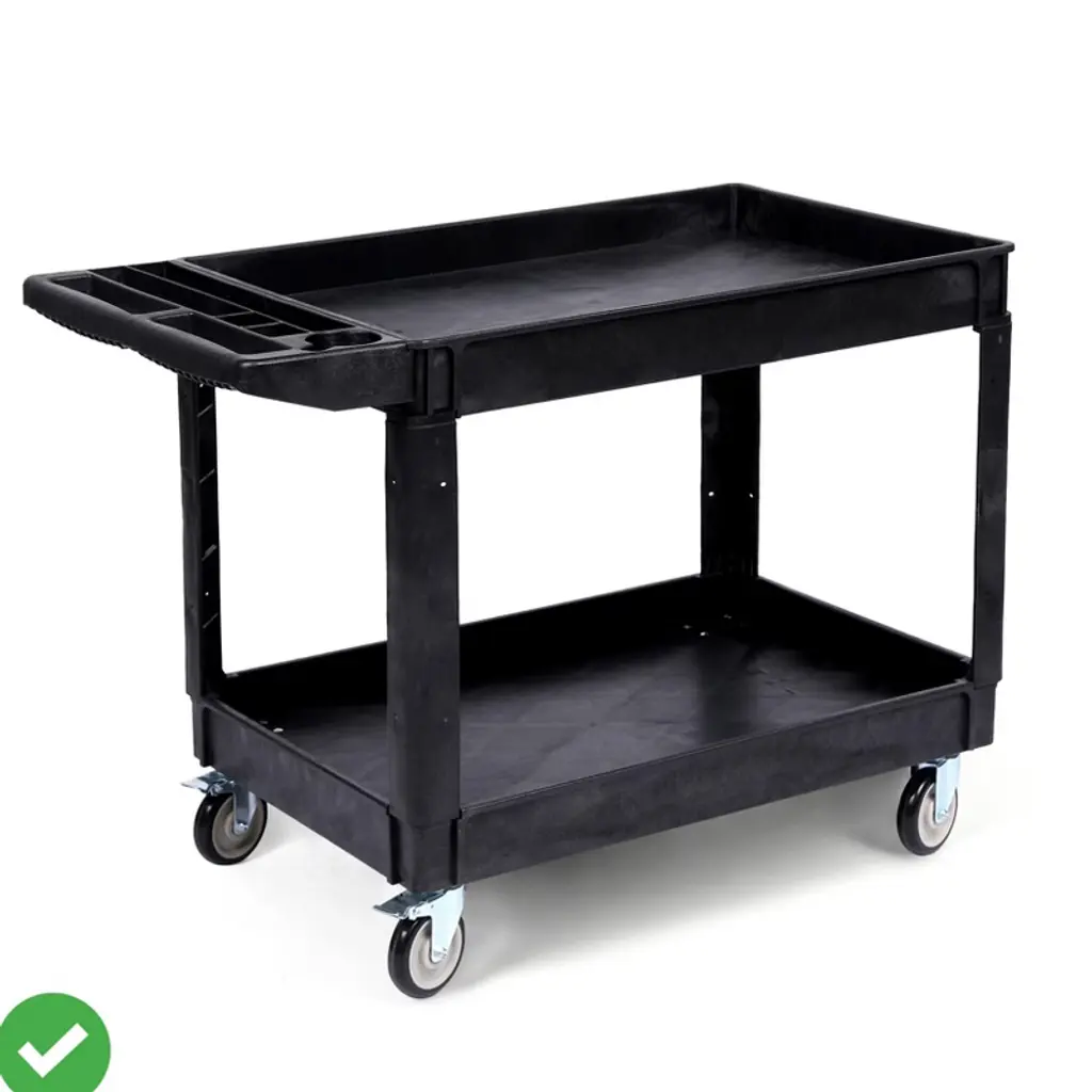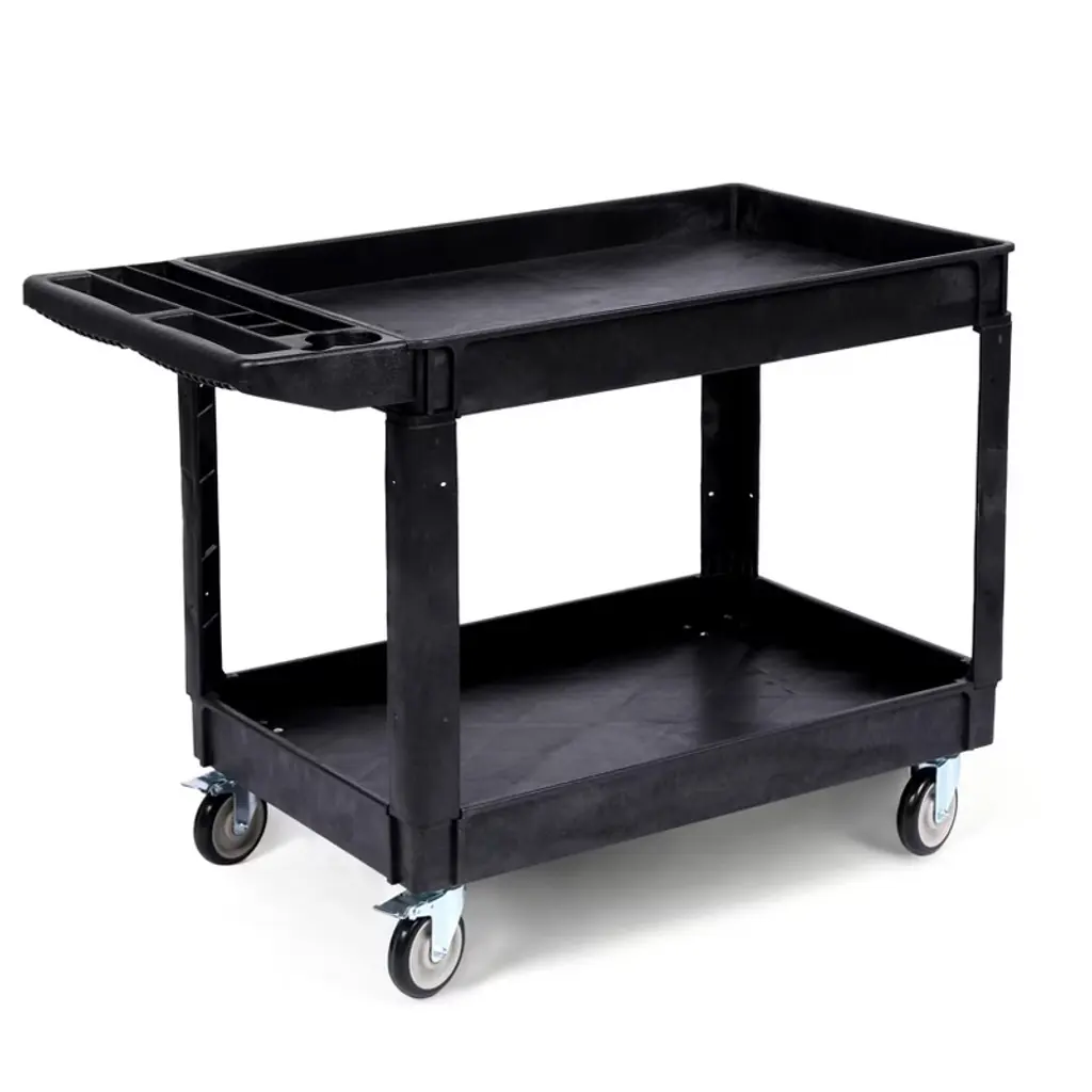2 Tier Large Pp Service Cart, Rolling Utility Cart Shelf With 360°swivel Wheels, 550lbs, Storage Handle, For Warehouse/vegetables/cleaning, Black