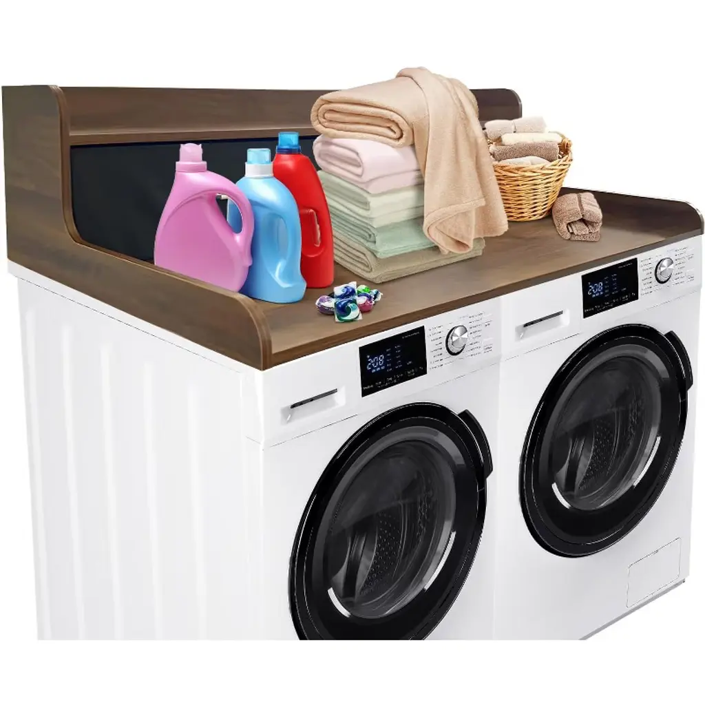 2 Tier Walnut Wood Washer Dryer Countertop With Shelf, Storage, Large Washer And Dryer Topper For Laundry Organization