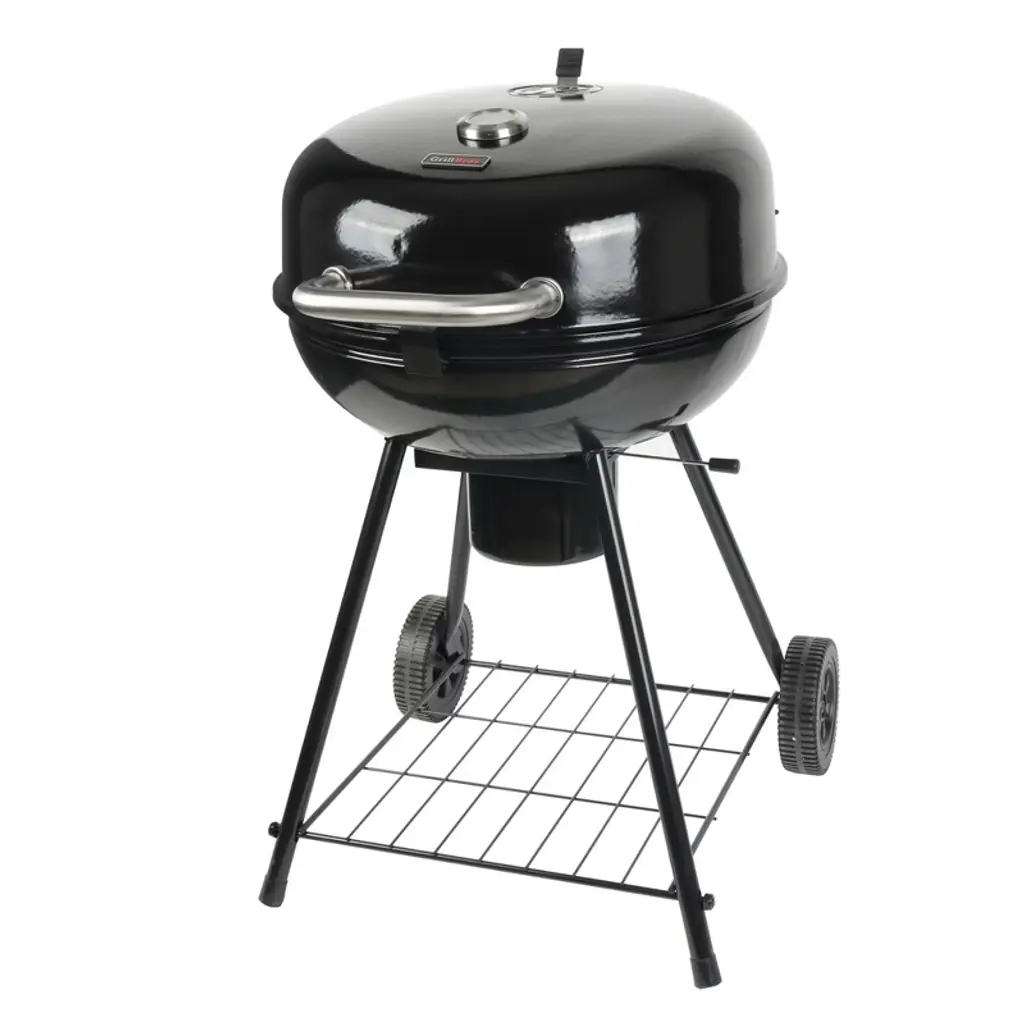 21" Portable Charcoal Grill With Wheels And Bottom Shelf, Bbq Smoker With Adjustable Vents On Lid - Black