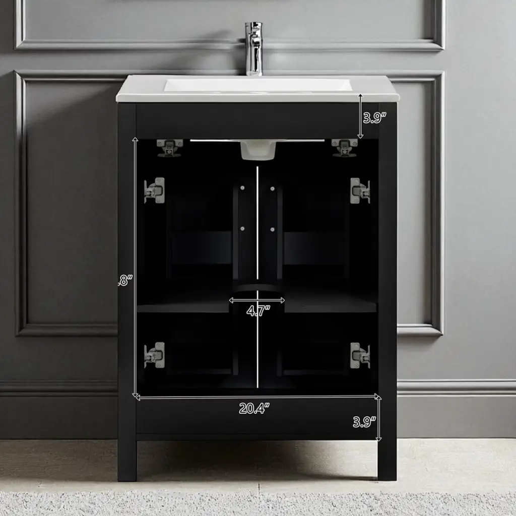 24" Bathroom Vanity With Ceramic Sink, Solid Wood Frame, 2 Soft Close Doors, Adjustable Shelf, Freestanding Modern Storage Cabinet