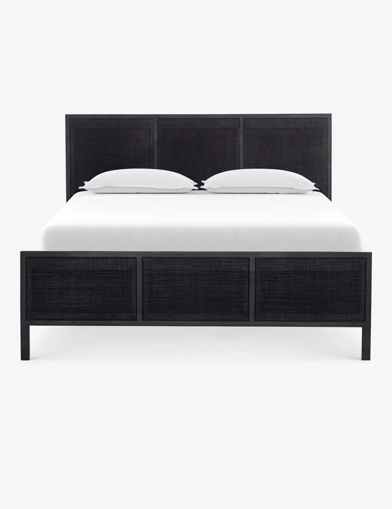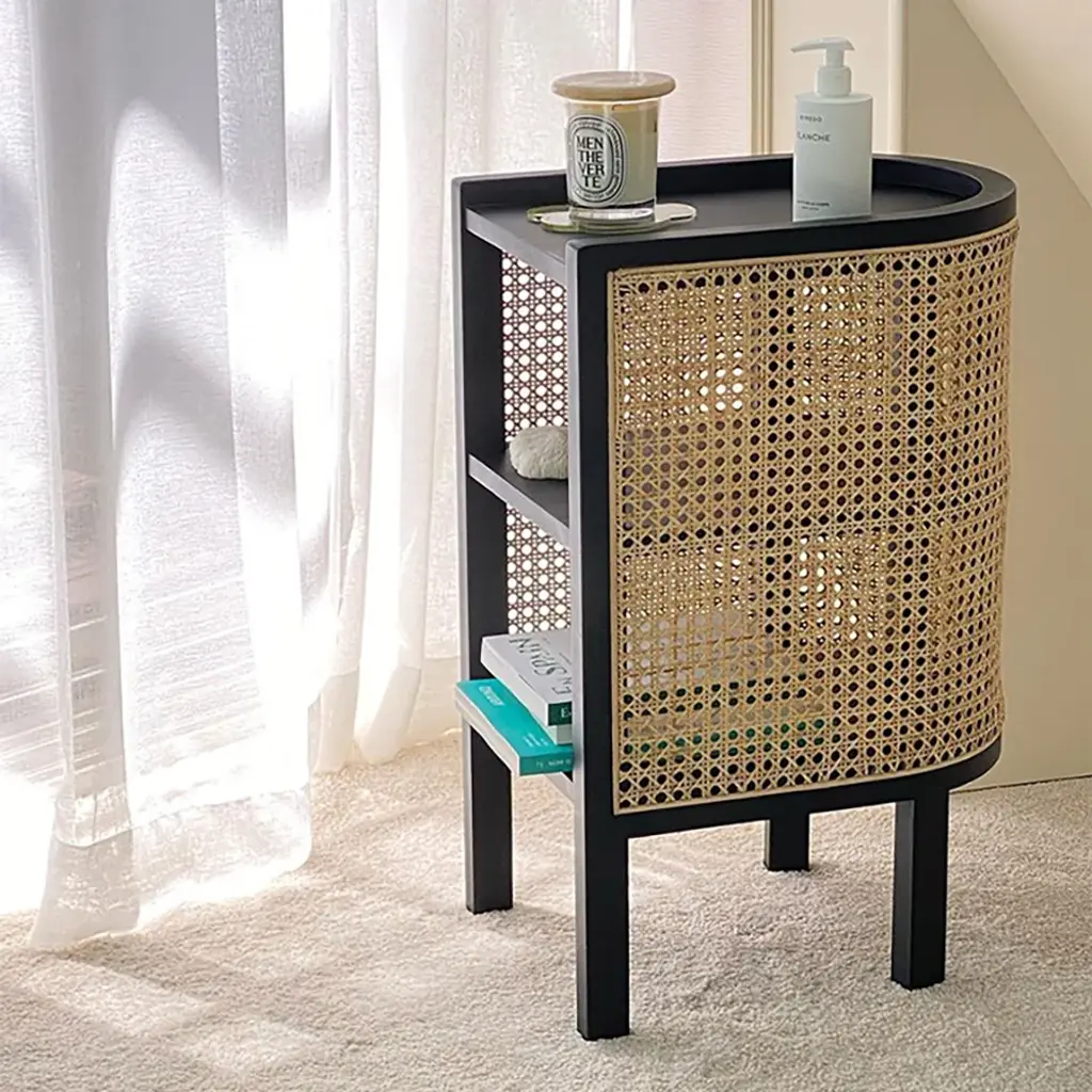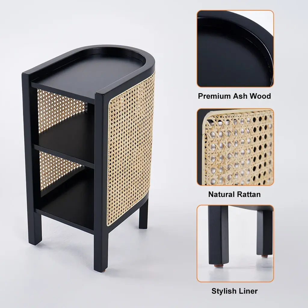 24" Black Nightstand Semi-Circle Rattan Bedside Table With 1 Shelf