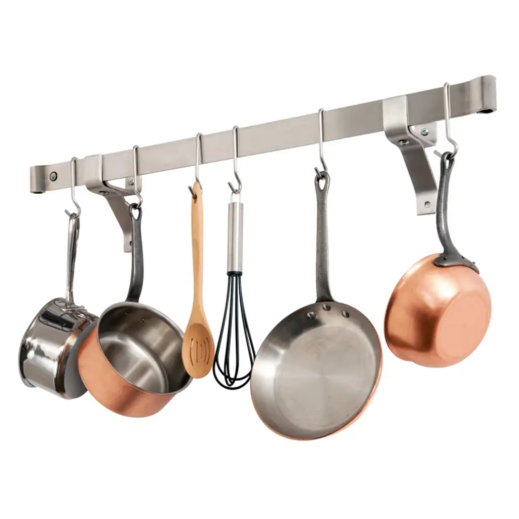24" X 12" Stainless Steel Wall Mounted Pot Rack Shelf With 5 Hooks, Stainless Steel Shelf, Commercial Wall Mounted, Easy To Clear