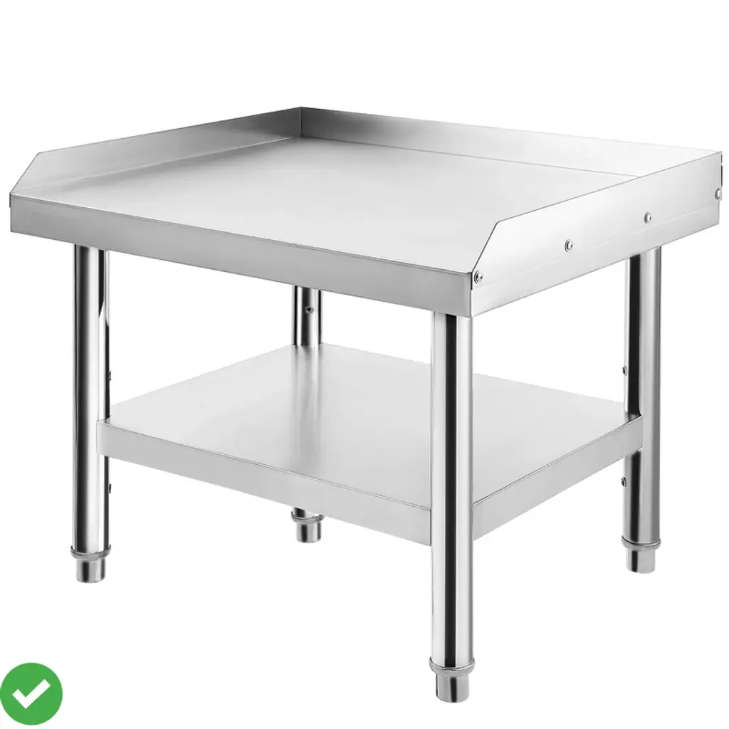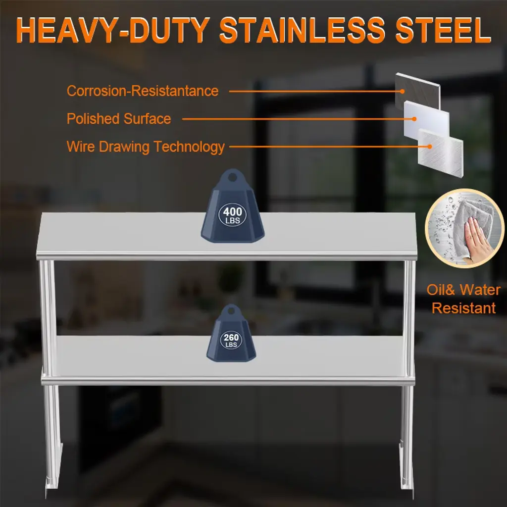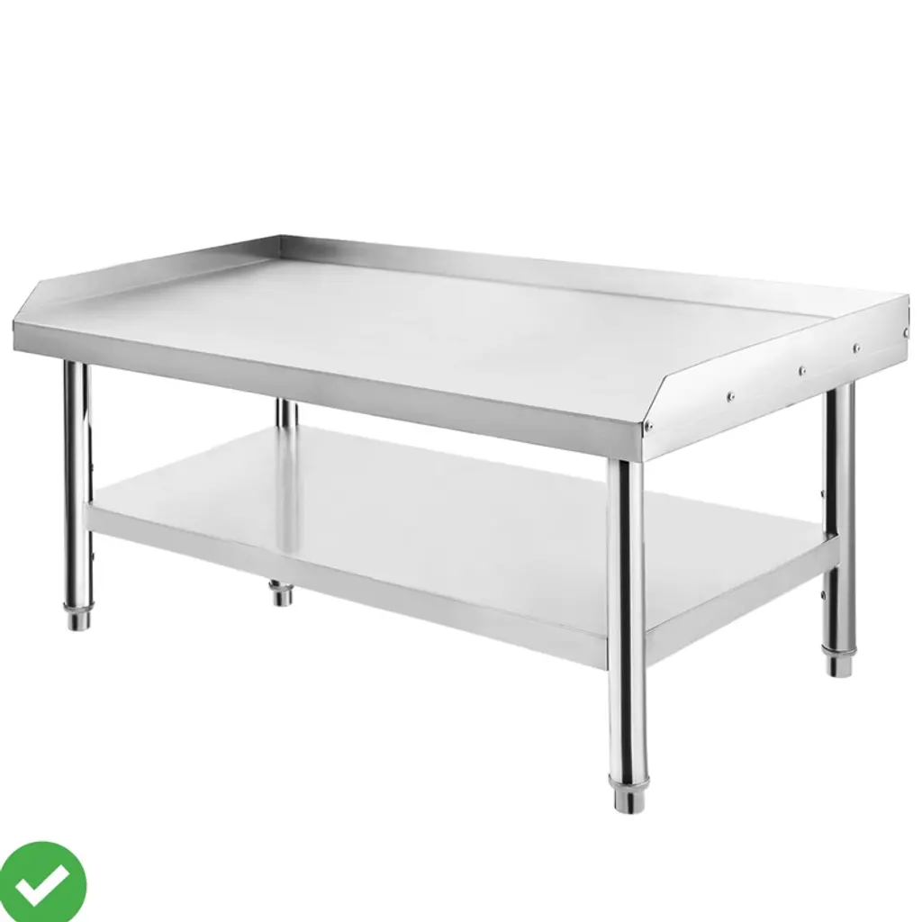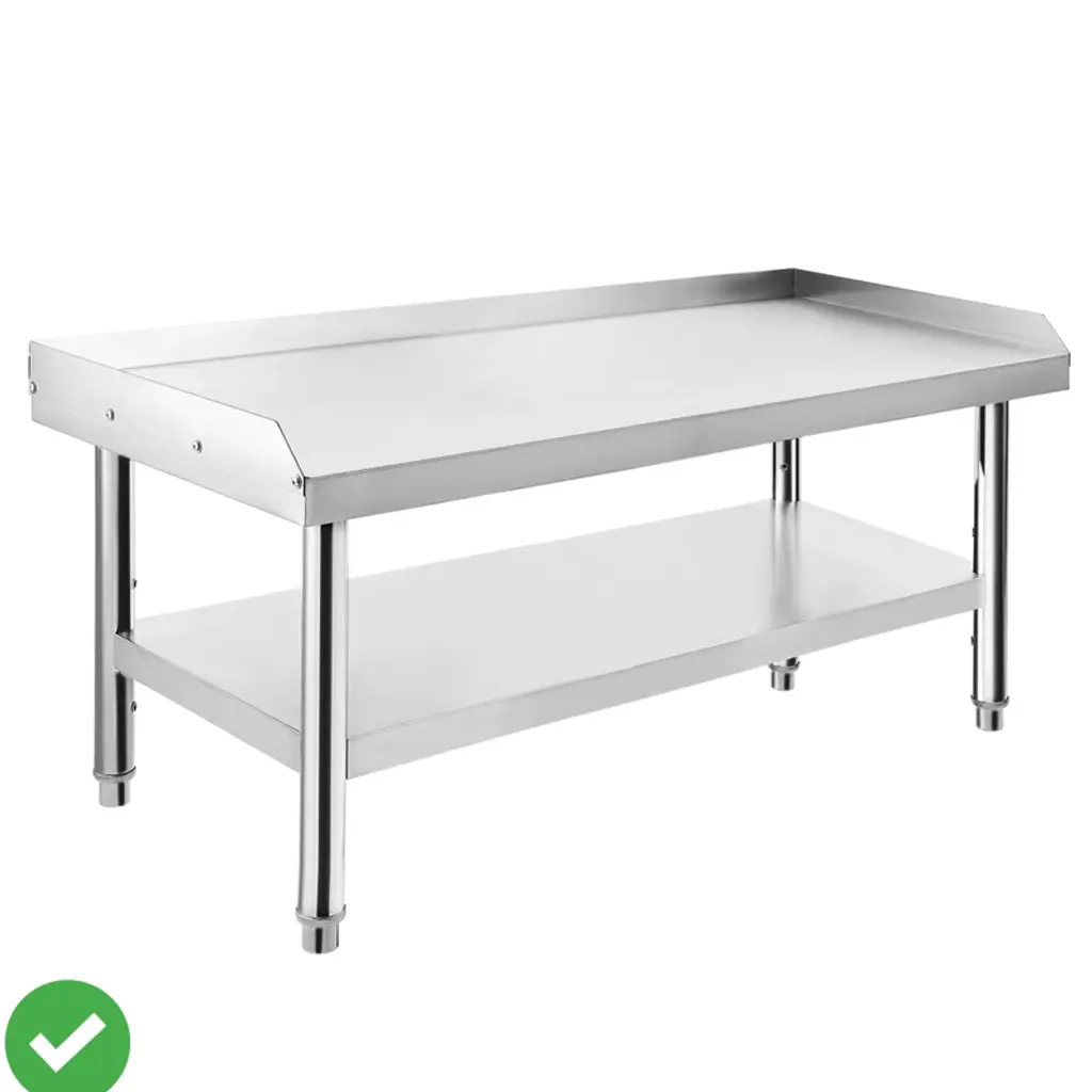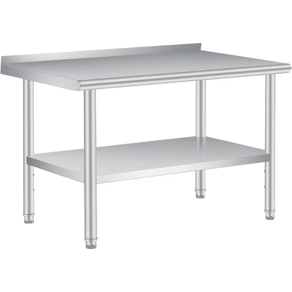 Product Description- Heavy duty stainless steel construction for long-lasting durability- NSF certified for commercial use, ensuring safety and hygiene- Adjustable height and shelf for customizable workspace- Galvanized steel frame with anti-slip feet for stability- Easy to clean, rust-resistant surface- Includes backsplash to protect walls and keep workspace tidy- Optional casters for mobility- Easy assembly with clear instructionsUpgrade your workspace with this versatile, heavy duty stainless steel prep table designed to meet the needs of professional chefs and home cooks alike.Perfect for restaurants, hotels, bars, laundry rooms, and workshops, it combines strength, functionality, and ease of use in one reliable package.Specification:Size:24"D x 48"W x 36"H/24"D x 60"W x 36"HItem Weight: 46/55.12 PoundsWeight capacity: 860 lbs (480 lbs +380 lbs)Color: SilverMaterial: Stainless steelProduct care instructions: Hand WashShape: SquareBase type: LegPacking list:Stainless steel table x1Hardware bag x1Assembly guide x1Friendly note:Select a flat and stable surface for placement.Wipe the pre table with a soft, damp cloth to keep it clean.Regularly check the hardware and tighten screws as needed to ensure longevity.When adjusting the feet, do so gradually.