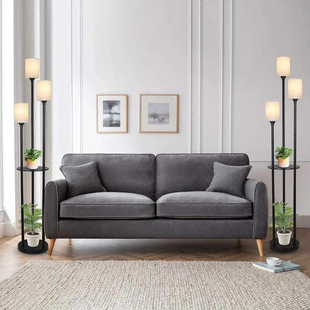 3-Lights Tall Floor Lamp With Foot Switch And Shelf - Linen Shade