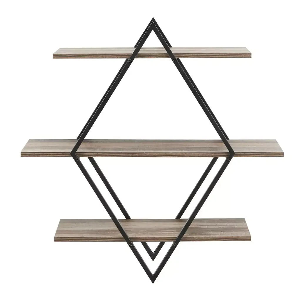 Danya B. 3-tier Antigua Crossed Double Diamond Wall Shelf Unit Black/rustic: Laminated Iron Frame, Includes Mounting Brackets