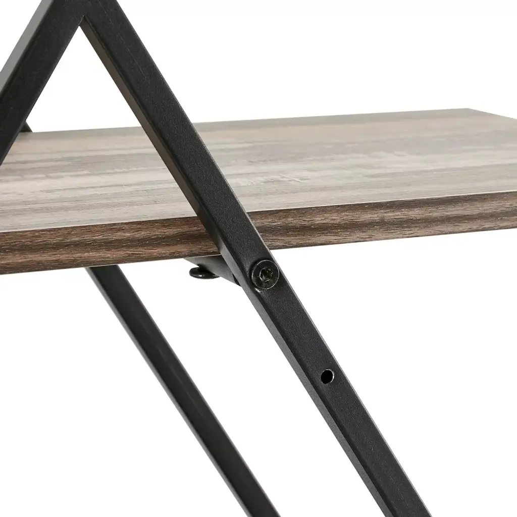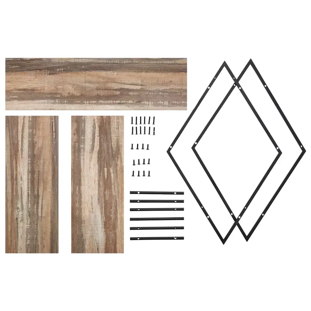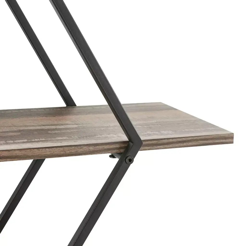 The understated appearance of the Antigua Crossed Double Diamond Shelf Unit speaks of modern sophistication. This three-level industrial-style shelving unit features distressed wood finish laminate shelves held together by a black metal diamond frame. Elegant clean lines and spacious shelves strike a balance between form and function. A great addition to entryways, living rooms, bedrooms, bathrooms, or kitchens for storing anything from keepsakes to collectibles, books, spices, and decor.