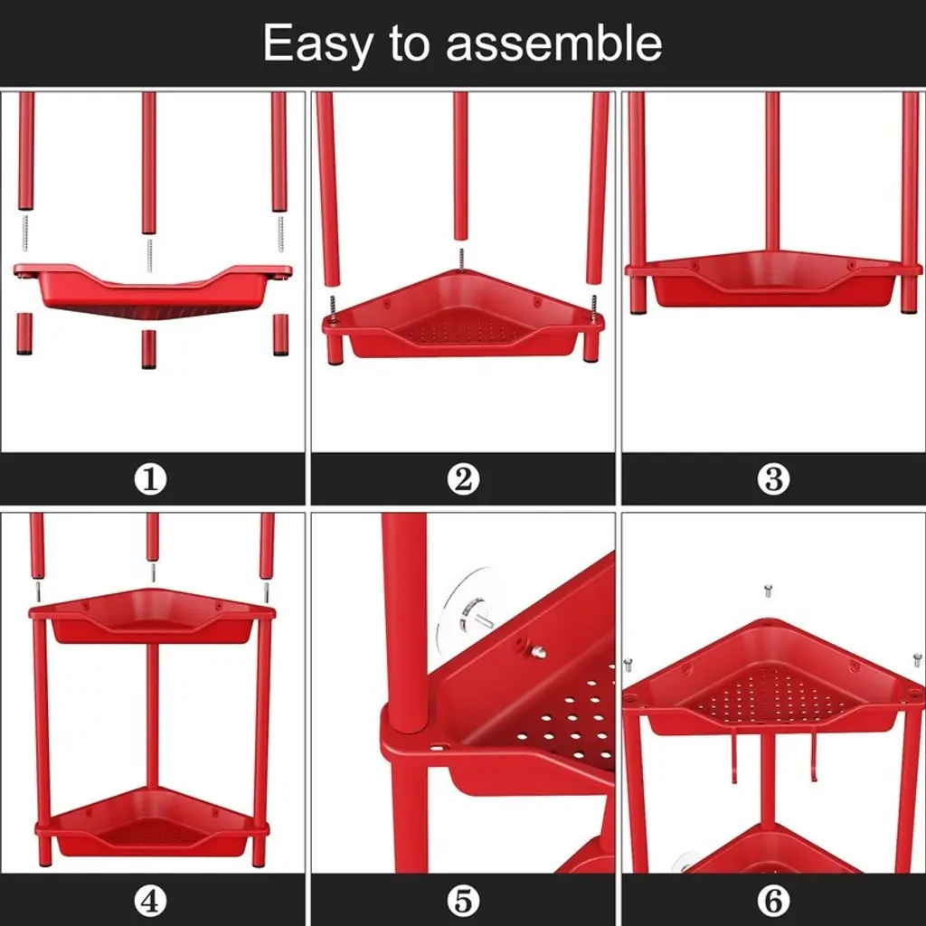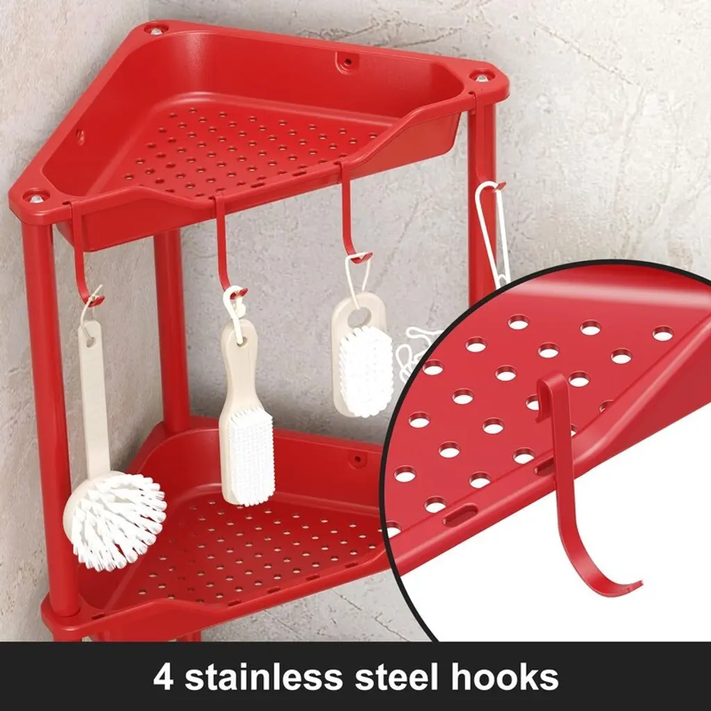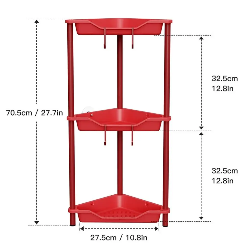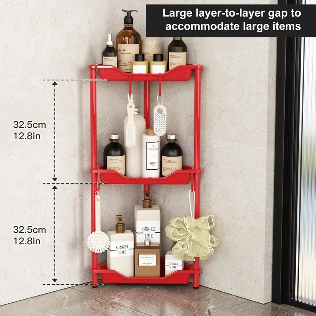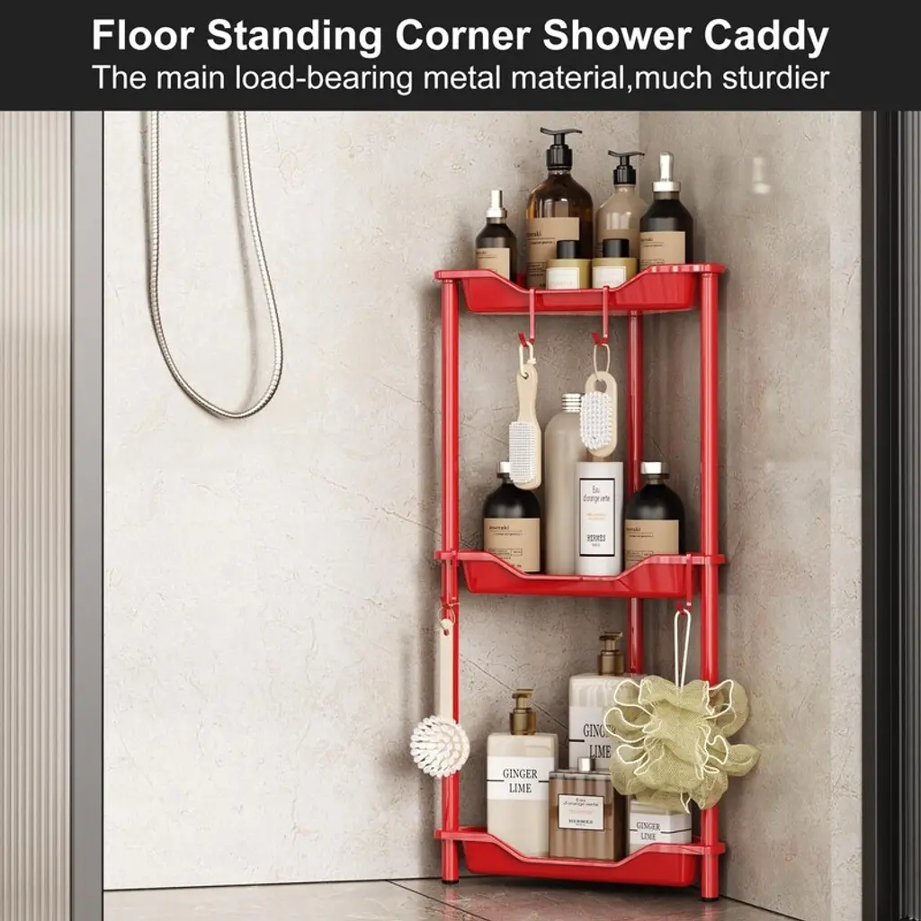 3 Tier Floor Standing Corner Shower Caddy Organizer, Plastic Metal Splicing Floor Corner Shelf Rack Stands - Red