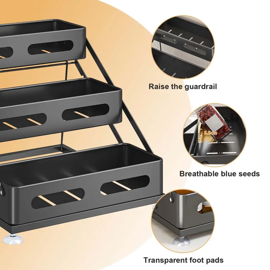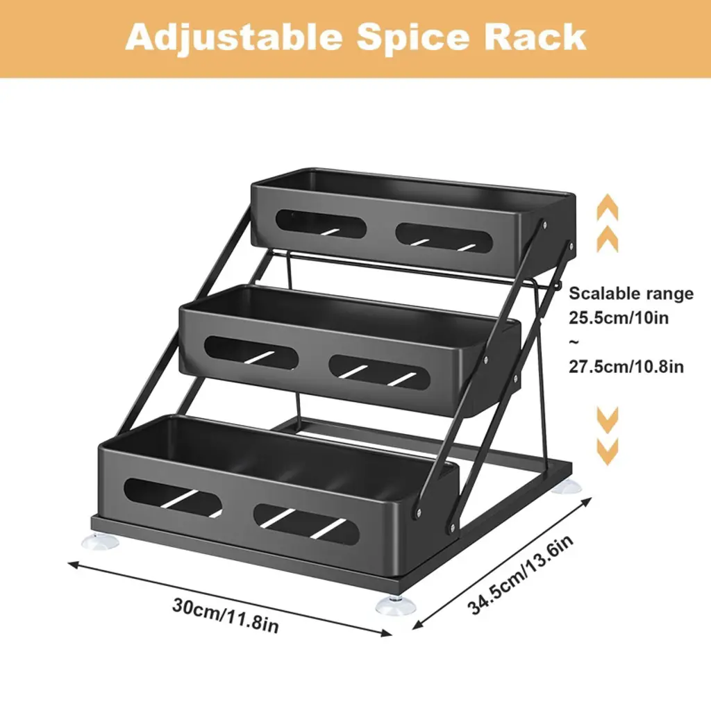 3 Tier Spice Rack Expandable Spice Rack Made Of Carbon Steel, Spice Racks Kitchen Shelf Worktop Kitchen Organiser Drawer Kitchen Organiser