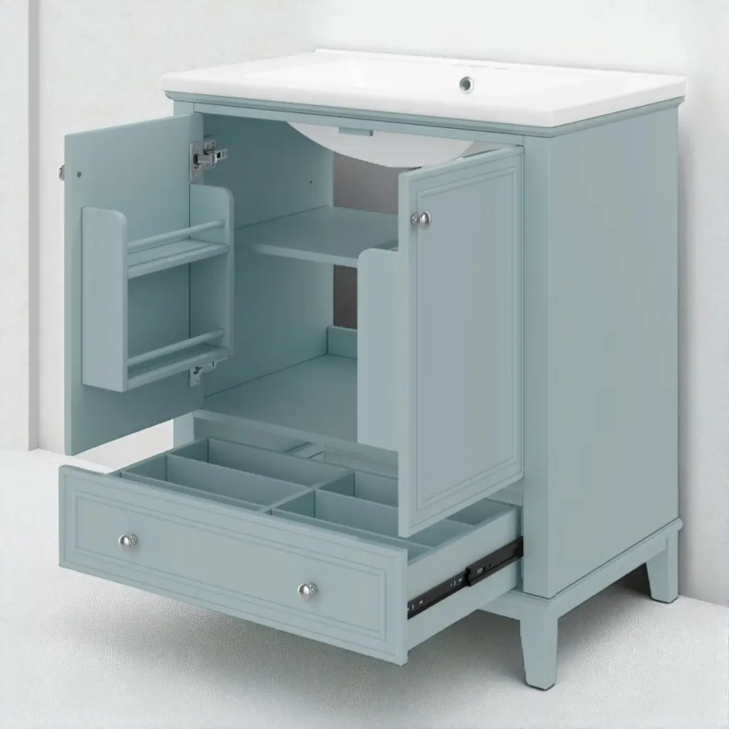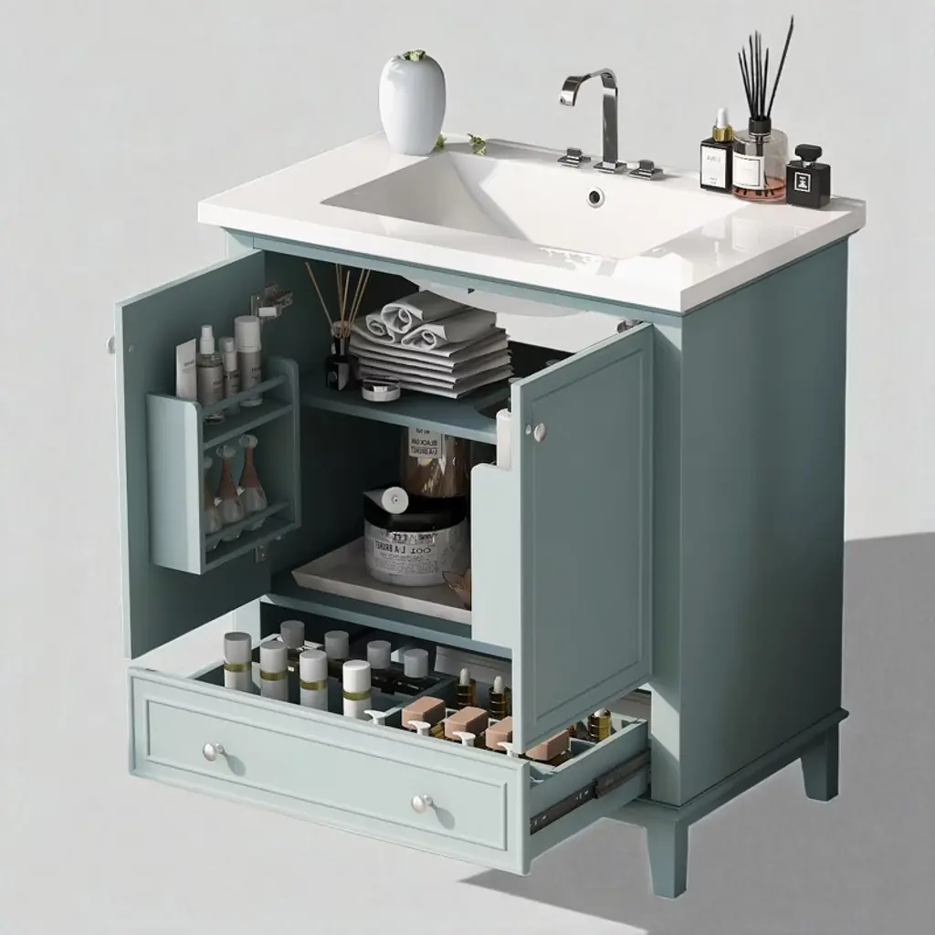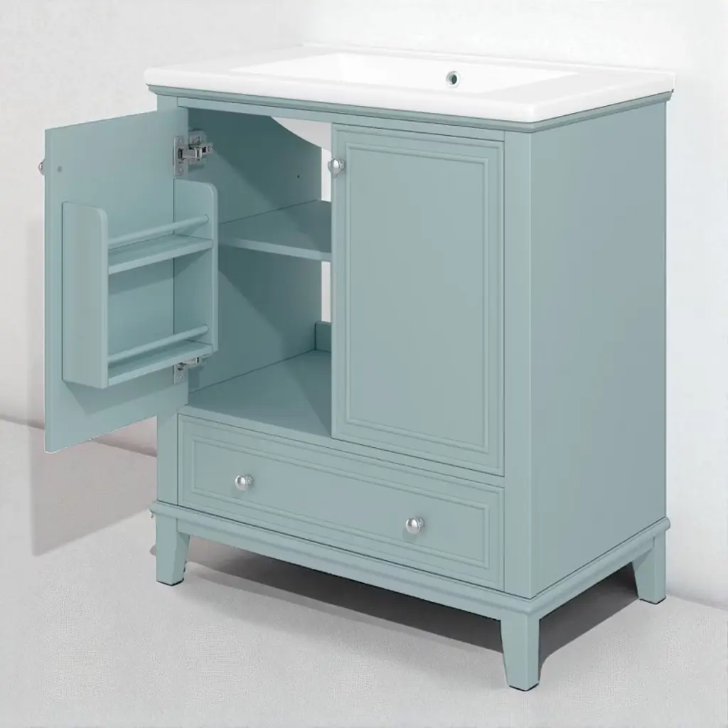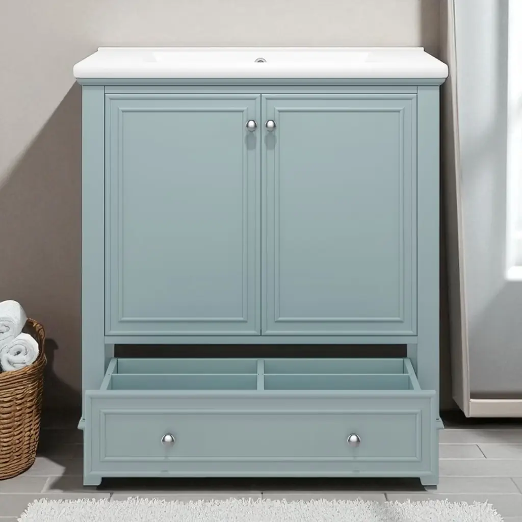 30" Bathroom Vanity With Ceramic Sink, Solid Wood & Mdf Construction, 2 Doors, 1 Drawer, Adjustable Shelf, Freestanding Cabinet
