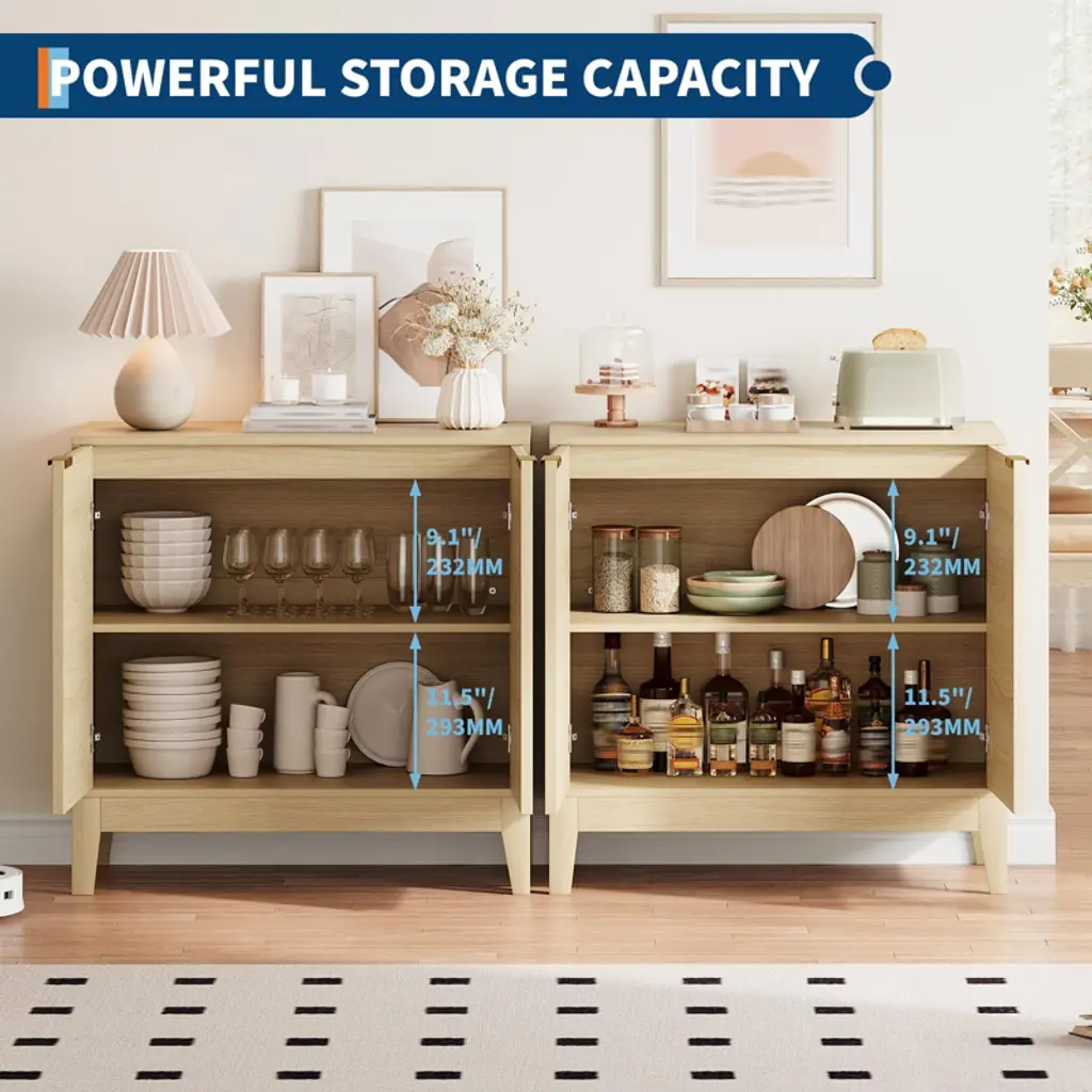 Discover the perfect blend of style, functionality, and durability with our 31.5" Fluted Cabinet with Storage, designed to elevate any living room, dining room, kitchen, or entryway. This modern accent credenza features two spacious compartments with a height-adjustable shelf, offering massive customizable storage to keep your bulky dinnerware, kitchen appliances, pantry overflow, or even board games neatly organized and out of sight. With a generous depth of 15.