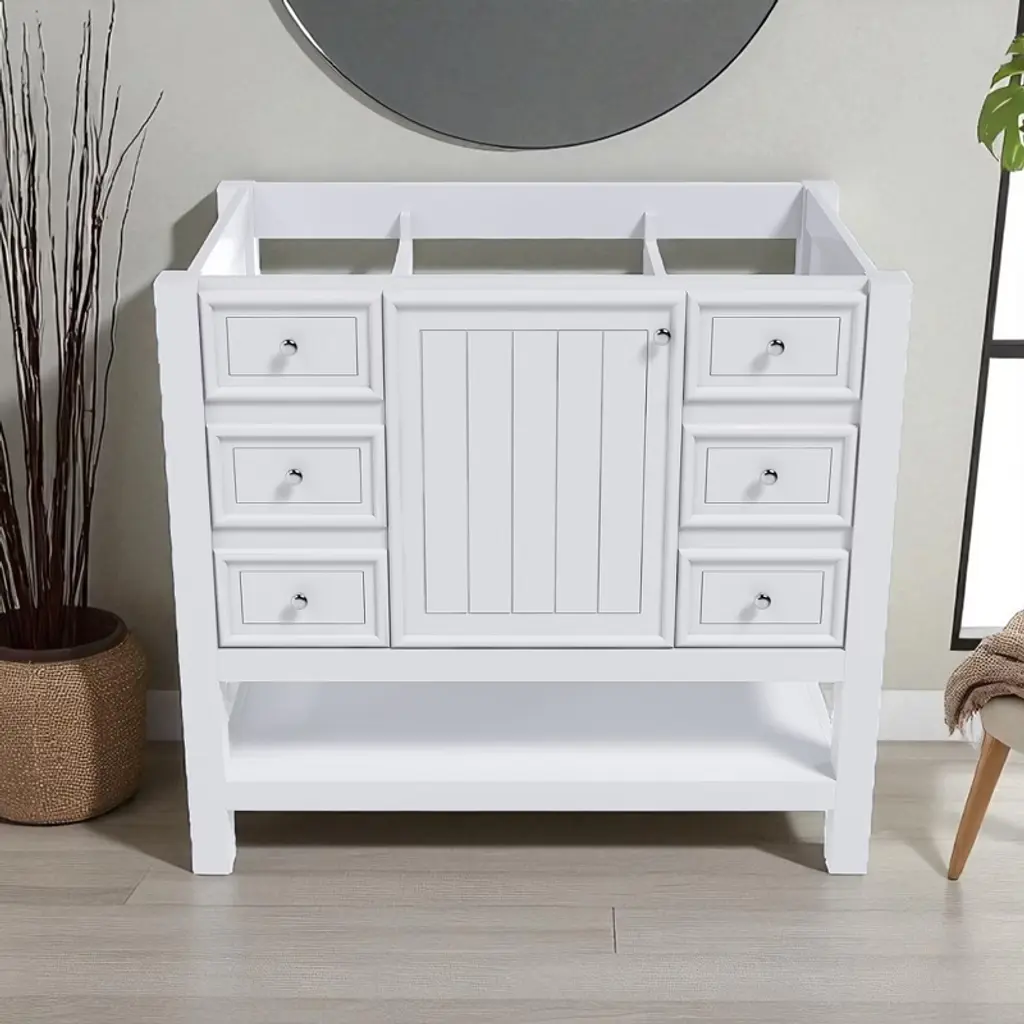 36" Bathroom Vanity Base Only, Freestanding Cabinet With 1 Door And 6 Drawers, Adjustable Shelf, Sink Not Included
