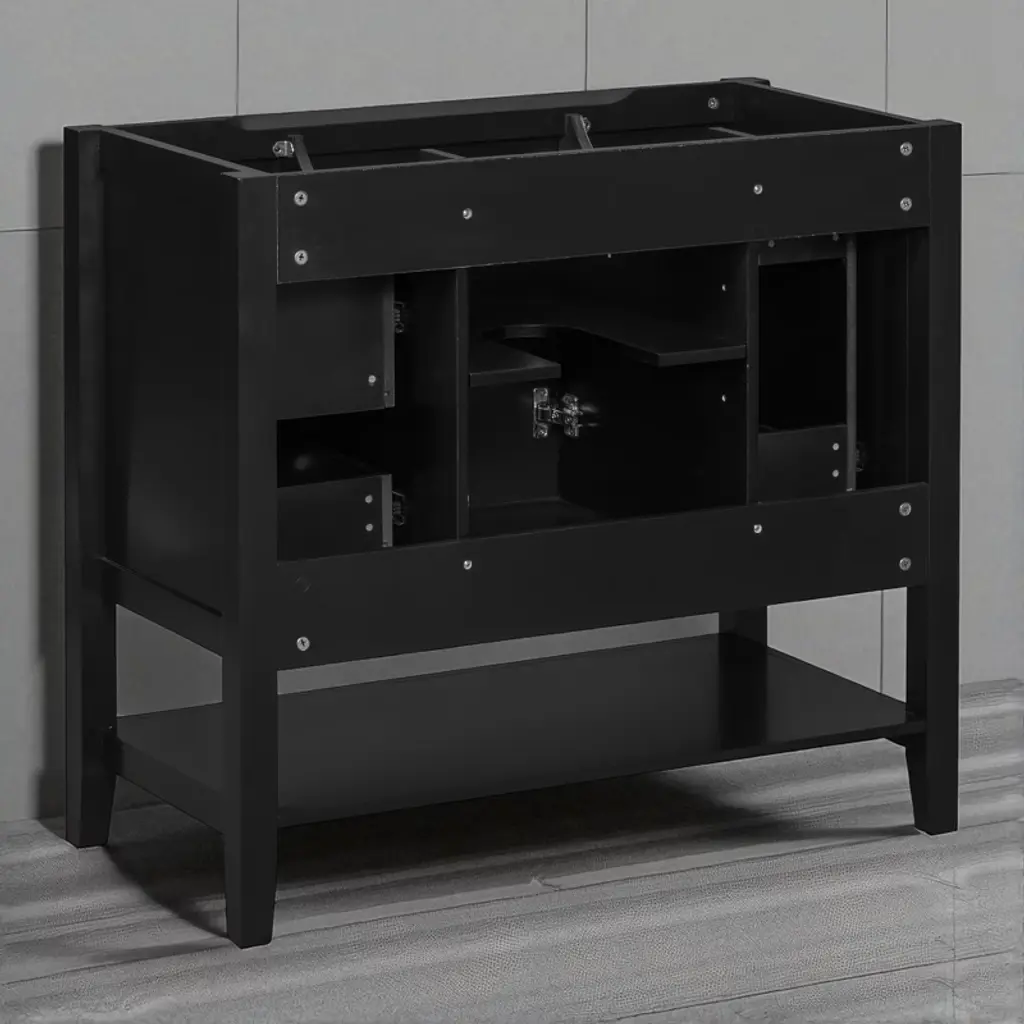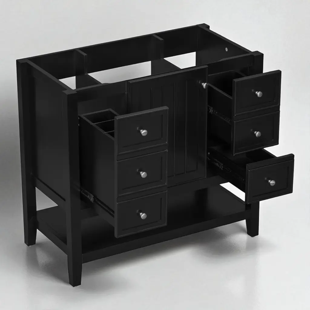 36" Freestanding Bathroom Vanity Base Only, Black Solid Wood & Mdf Cabinet With 1 Door, 3 Drawers & Open Shelf, No Sink