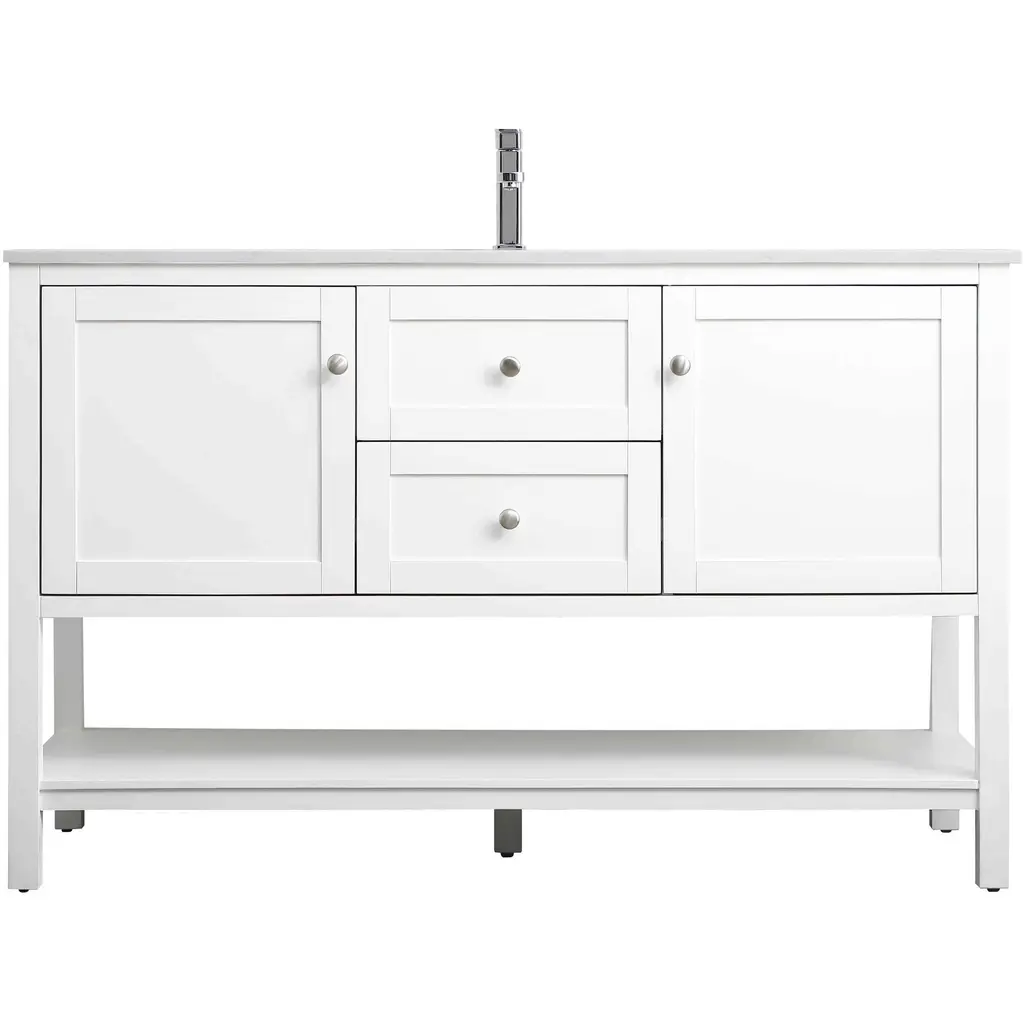 36-inch Bathroom Vanity Cabinet Only, Solid Wood Frame & Mdf, 1 Door And 3 Drawers With Open Shelf, No Sink
