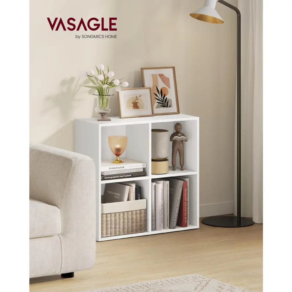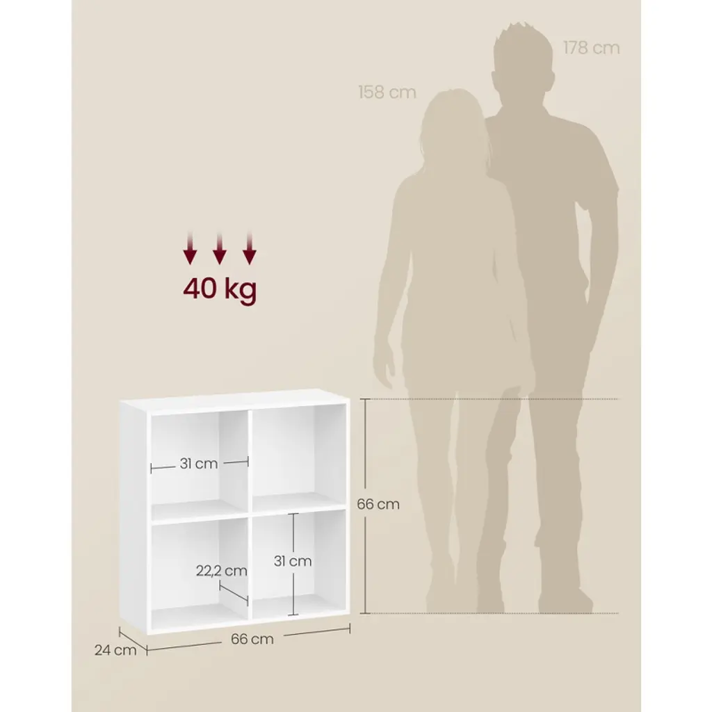 4-cube Storage Shelf, 9.4x26x26 Inch Open Bookcase With 22 Lb Per Compartment, For Living Room, Home Office, Freestanding Organizer, Cloud White