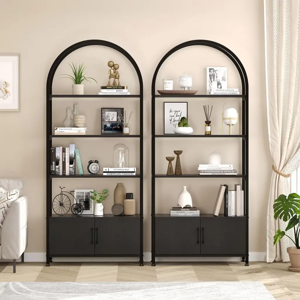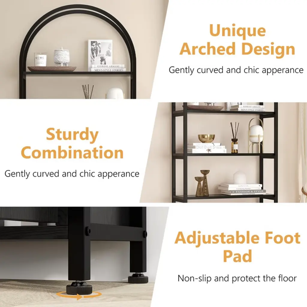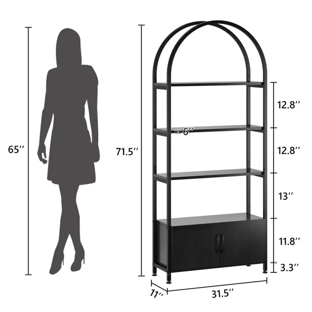 4 Tier Bookshelf, Arched Bookcase With Doors Storage, 71.5 Inches Tall Industrial Book Shelf With Sturdy Metal Frame And Quality Boards,bookshelf