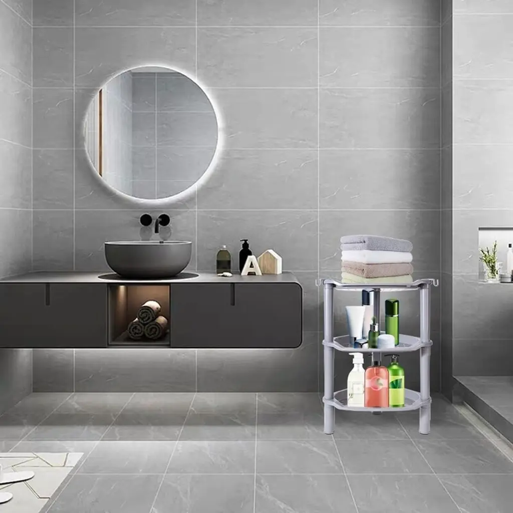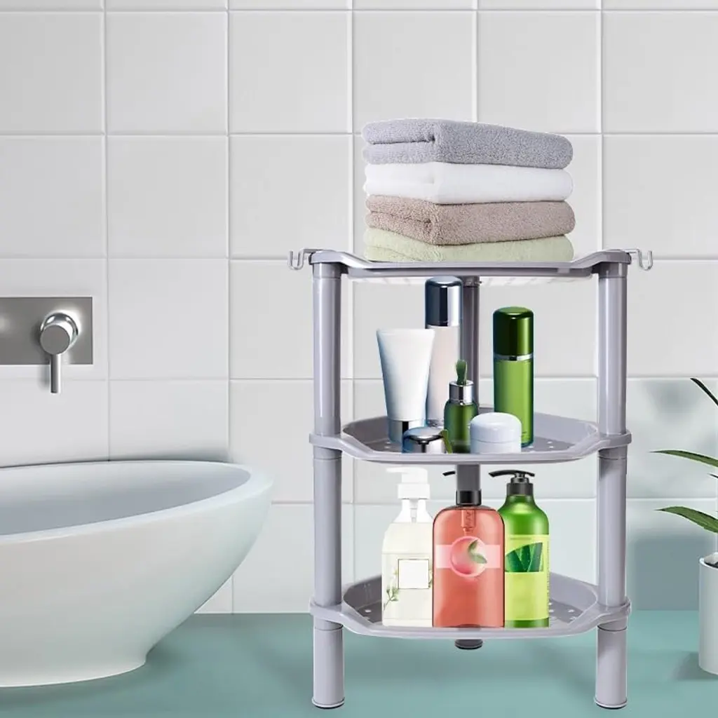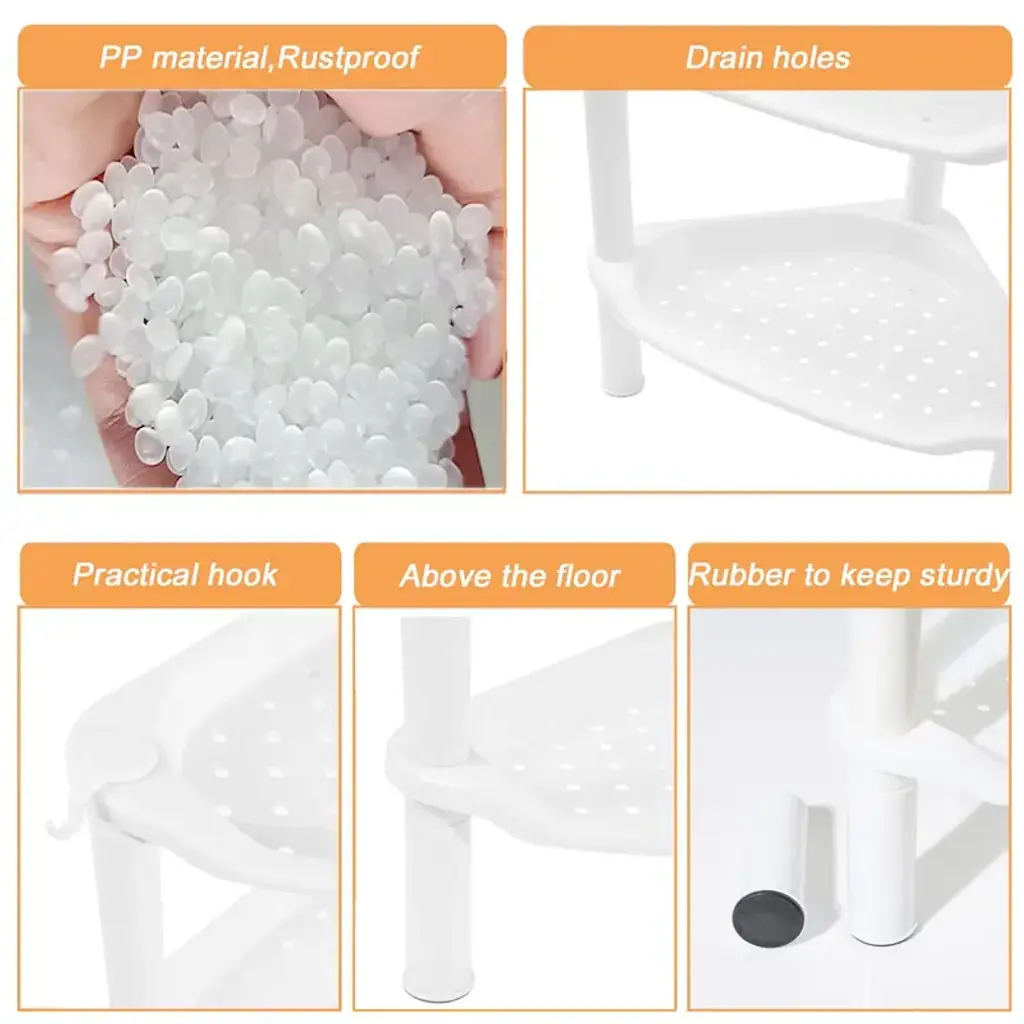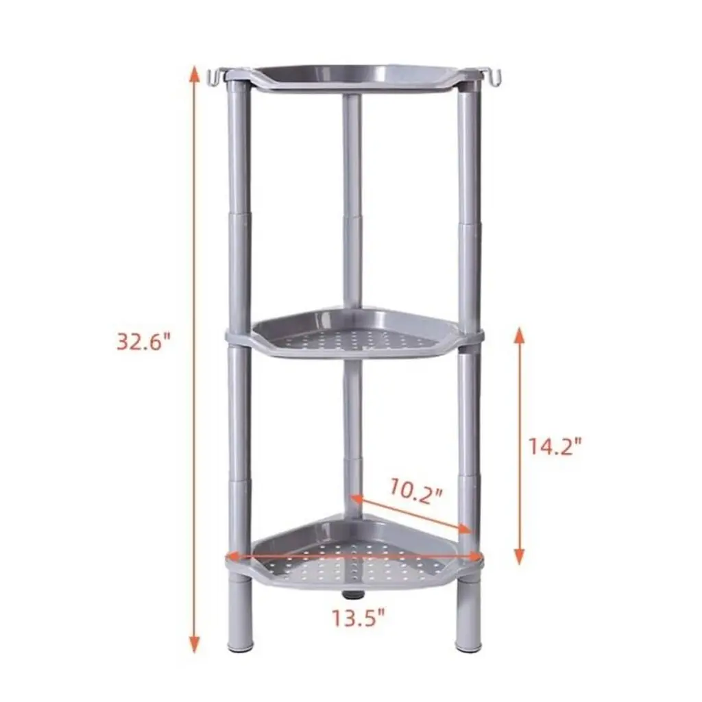 The shower caddy features rubberized feet that grip surfaces firmly to prevent sliding, while the durable plastic construction resists wear. Strategically placed drainage holes across all shelves ensure proper water runoff to maintain dryness and prevent mildew buildup.Measuring 13.5" x 10" x 40", this space-saving design fits perfectly in shower corners to maximize unused areas. The generous depth accommodates full-sized shampoo bottles, shower gels, and other bath essentials while keeping them organized and within easy reach.Assembly requires no tools and takes just minutes, with a simple design that can be quickly disassembled for thorough cleaning. The modular construction allows for easy maintenance while ensuring long-lasting use in humid bathroom environments.Constructed from high-grade waterproof plastic, the shelves feature flat, non-slip surfaces that keep items securely in place. The rustproof material withstands constant moisture exposure while the sturdy build prevents tipping, even when fully loaded with bottles and toiletries.This organizational solution effectively eliminates bathroom clutter by providing vertical storage that saves valuable floor space. The versatile design works equally well in kitchens or bedrooms, helping maintain tidy, efficient spaces throughout your home.