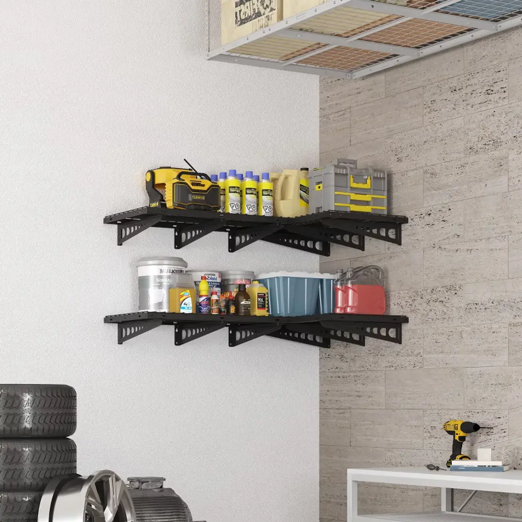 40 In. X 24 In. Heavy Duty Steel Garage Wall Shelf With Brackets In Black