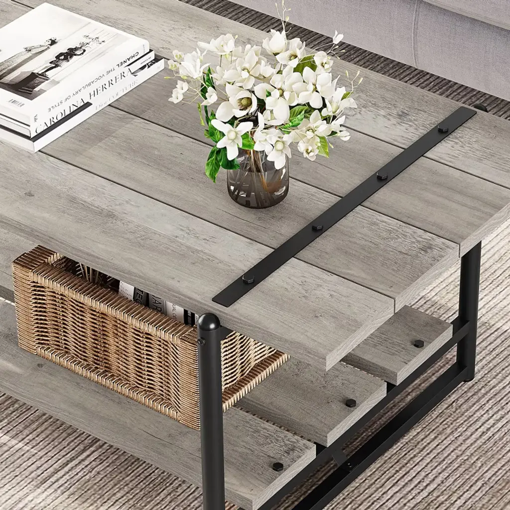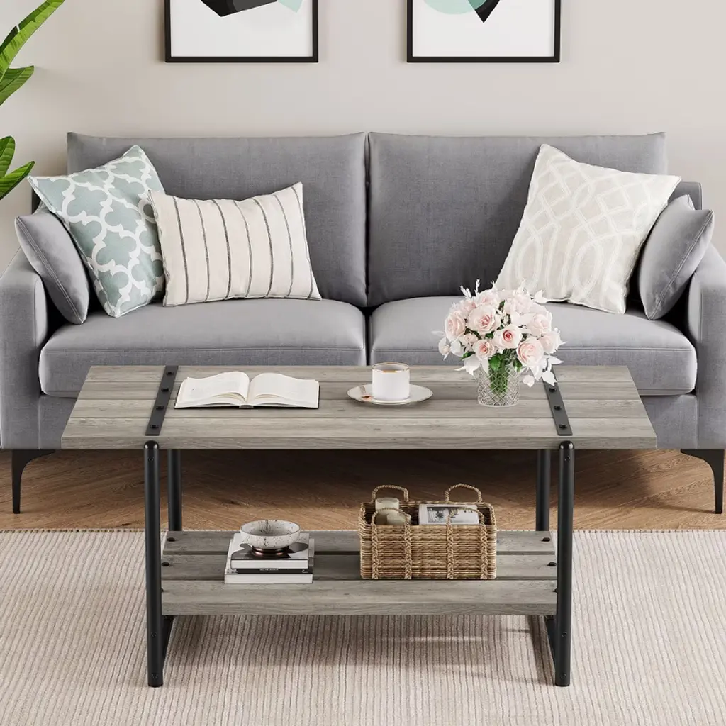 Upgrade your home with the 41" Coffee Table, a spacious and stylish centerpiece that brings together modern simplicity and practical storage. Measuring 47.24"D x 24.41"W x 17.7"H, this rectangular table features a generous top surface and a large open lower shelf, offering ample room to keep daily essentials organized and close at hand—whether in the living room, home office, or lounge area.Crafted from high-quality engineered wood and supported by a durable metal frame, this coffee table offers long-term strength and scratch-resistant performance. The wood grain texture and matte finish give it a refined, contemporary look, while the industrial lines blend seamlessly with a range of interiors—from farmhouse to modern minimalist.With its easy 5-minute assembly process and low-maintenance design, this table delivers both convenience and versatility. Store books, remote controls, and decor items neatly in the lower shelf and enjoy a clutter-free space every day. Available in gray, dark walnut, and walnut brown finishes to match your style.