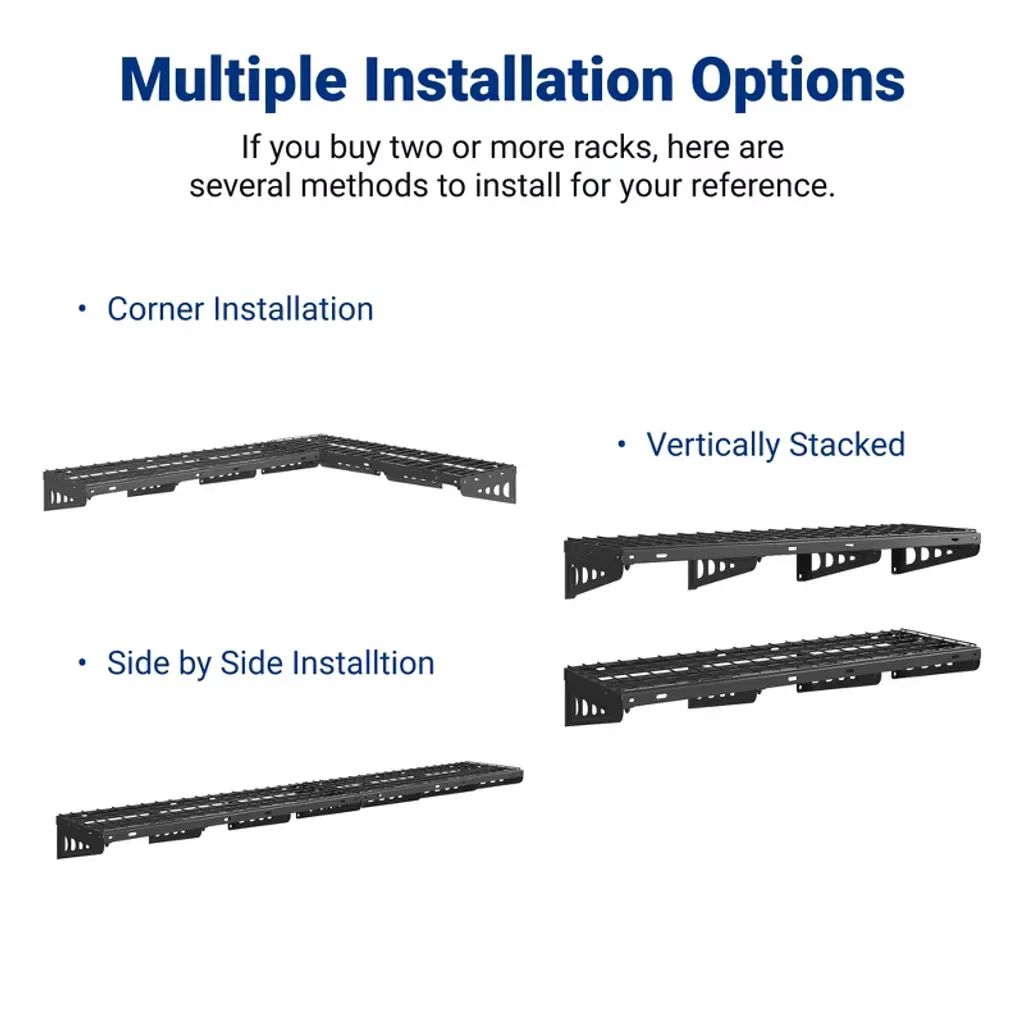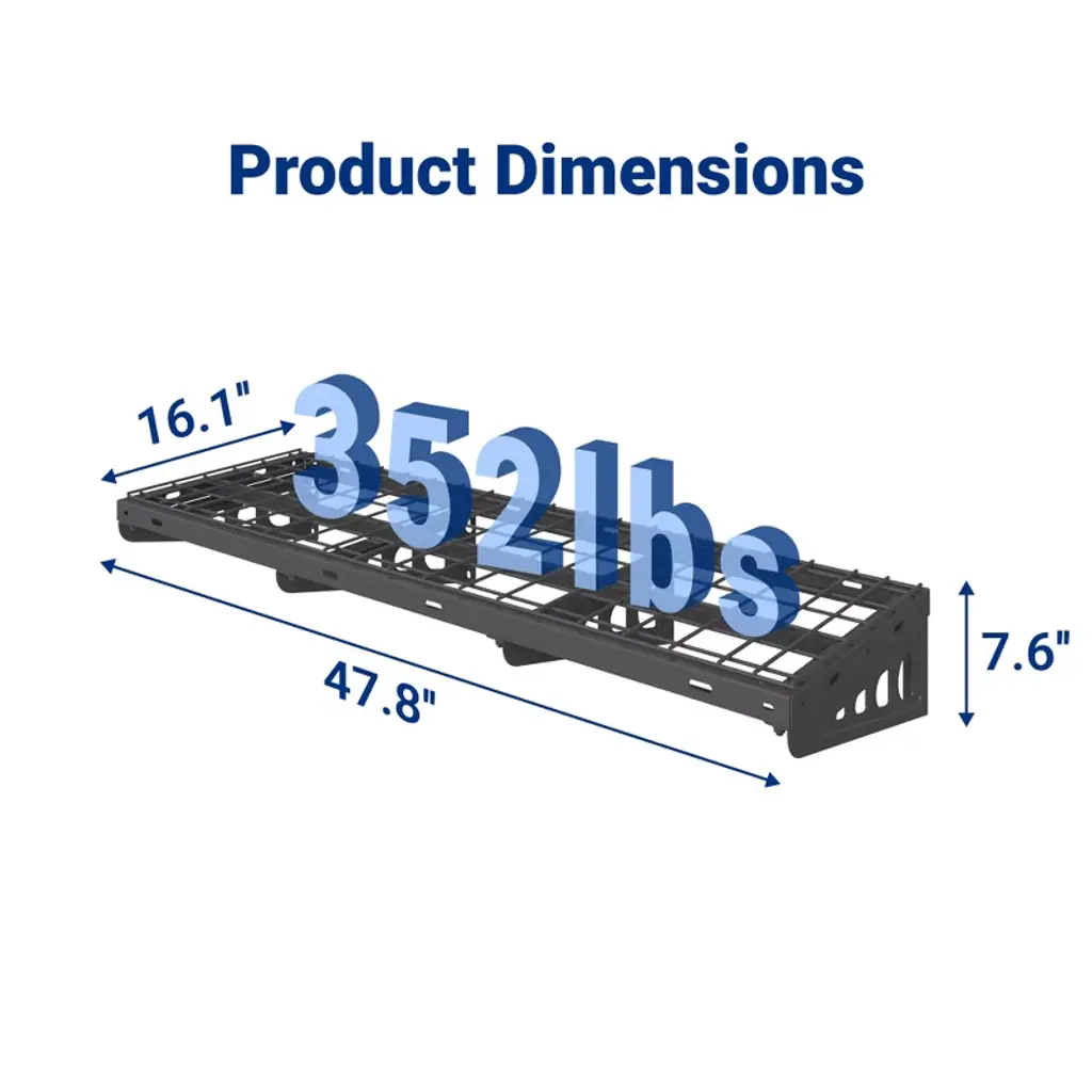 The FLEXIMOUNTS 48x16 wall shelf is a heavy-duty storage solution designed to help you maximize vertical space in your garage or workspace. Measuring 40 inches wide by 16 inches deep, this robust shelf is built to support heavy loads, making it ideal for storing tools, bins, and other bulky items. Constructed from durable, powder-coated steel, it offers long-lasting strength and resistance to scratches, rust, and wear. An added benefit of the FLEXIMOUNTS 48x16 shelf is its compatibility with FLEXIMOUNTS flat hooks, allowing you to hang bikes and other gear directly beneath the shelf for even greater space efficiency. This integrated design helps keep your floor clear and your items easily accessible. Whether you’re organizing a tight garage or expanding your existing storage system, the FLEXIMOUNTS 40x16 is a versatile and reliable solution.