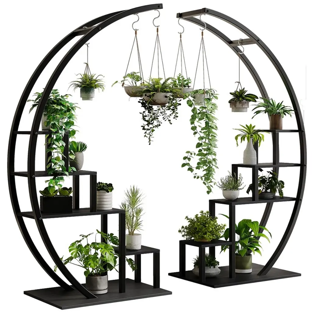 5 Tier Flower Plant Stand Indoor, 2 Pack Half Moon Plant Shelf Tall, Metal hanging Plant Rack for Multiple Display for Home Patio Lawn Garden Balcony