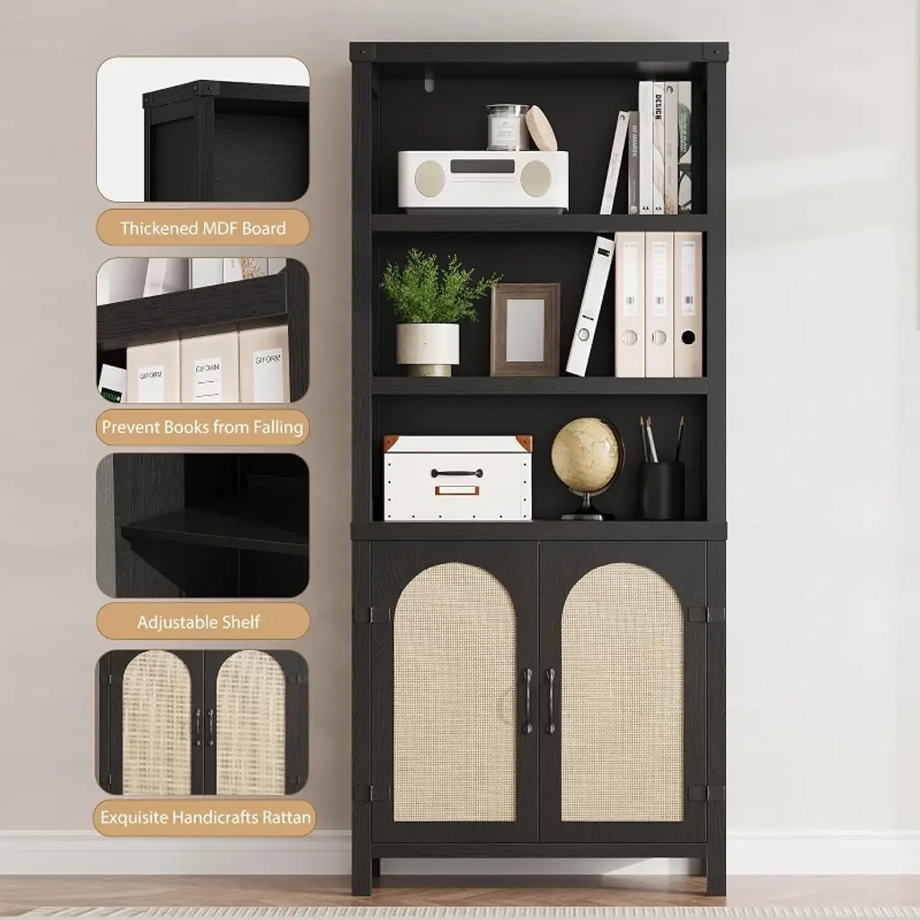 This Tall Bookcase with Doors is designed with a distinctive rattan aesthetic, bringing a bohemian flair to any room in your home.The shelf behind the doors is adjustable, allowing you to easily modify it to fit items of different sizes and shapes, ensuring your bookcase remains organized and functional.