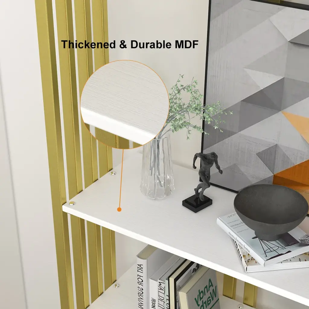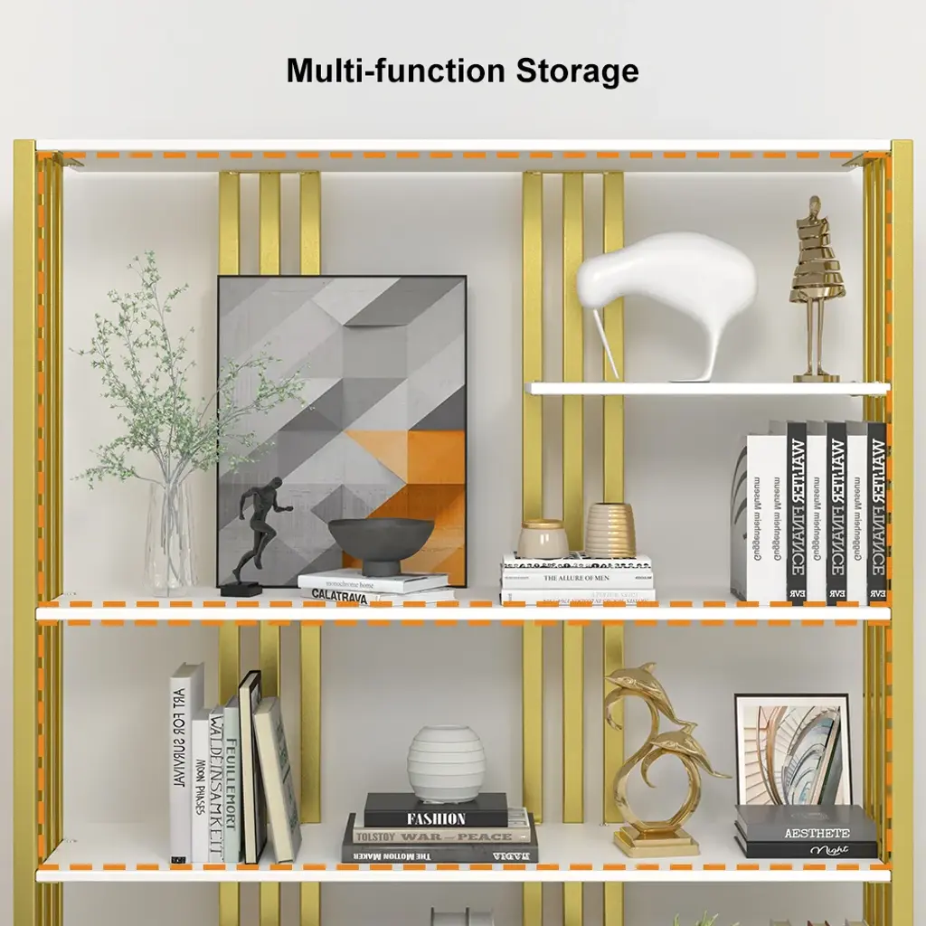 78" Modern Steel Etagere Bookshelf Display Shelving 6-Shelf White Tall Book Shelf