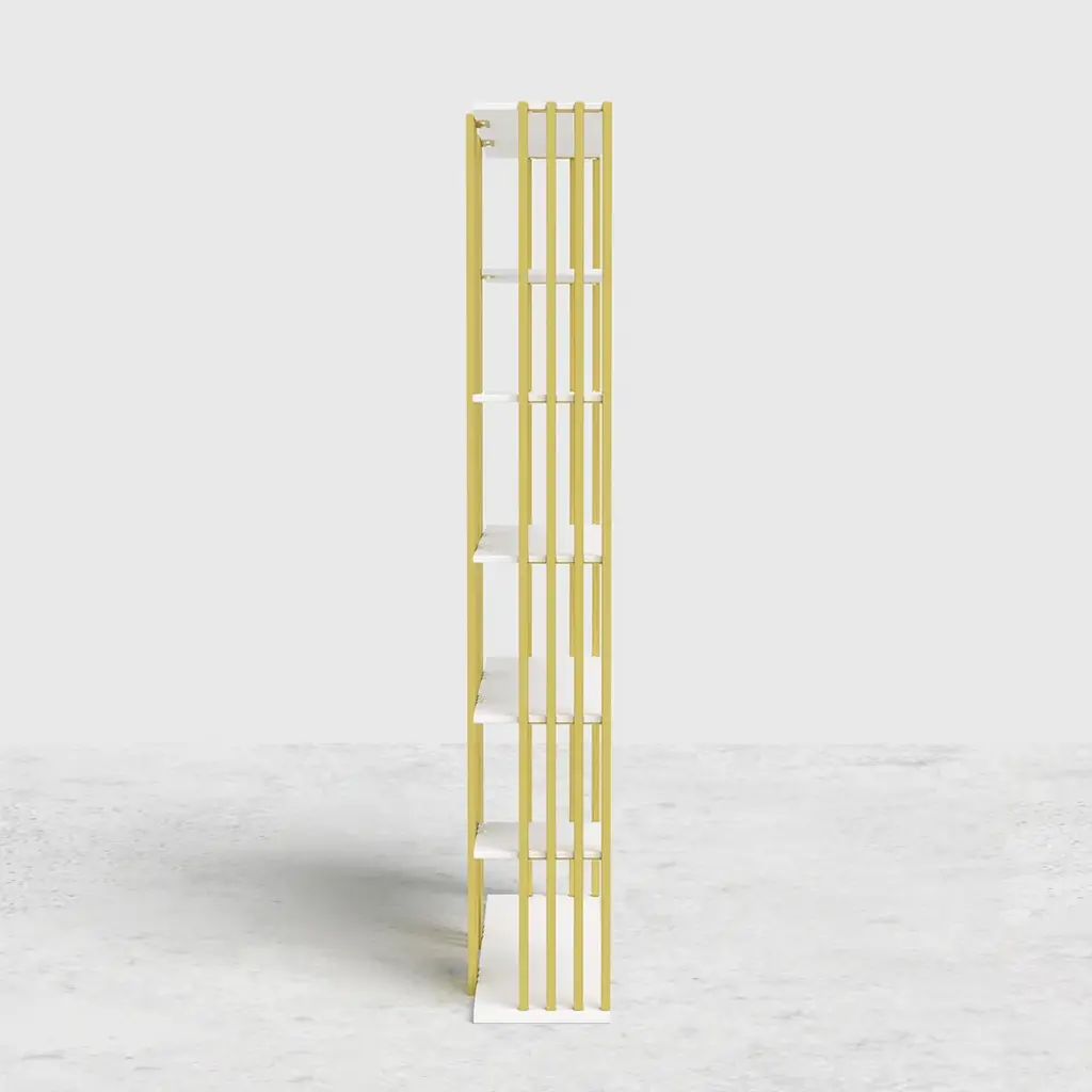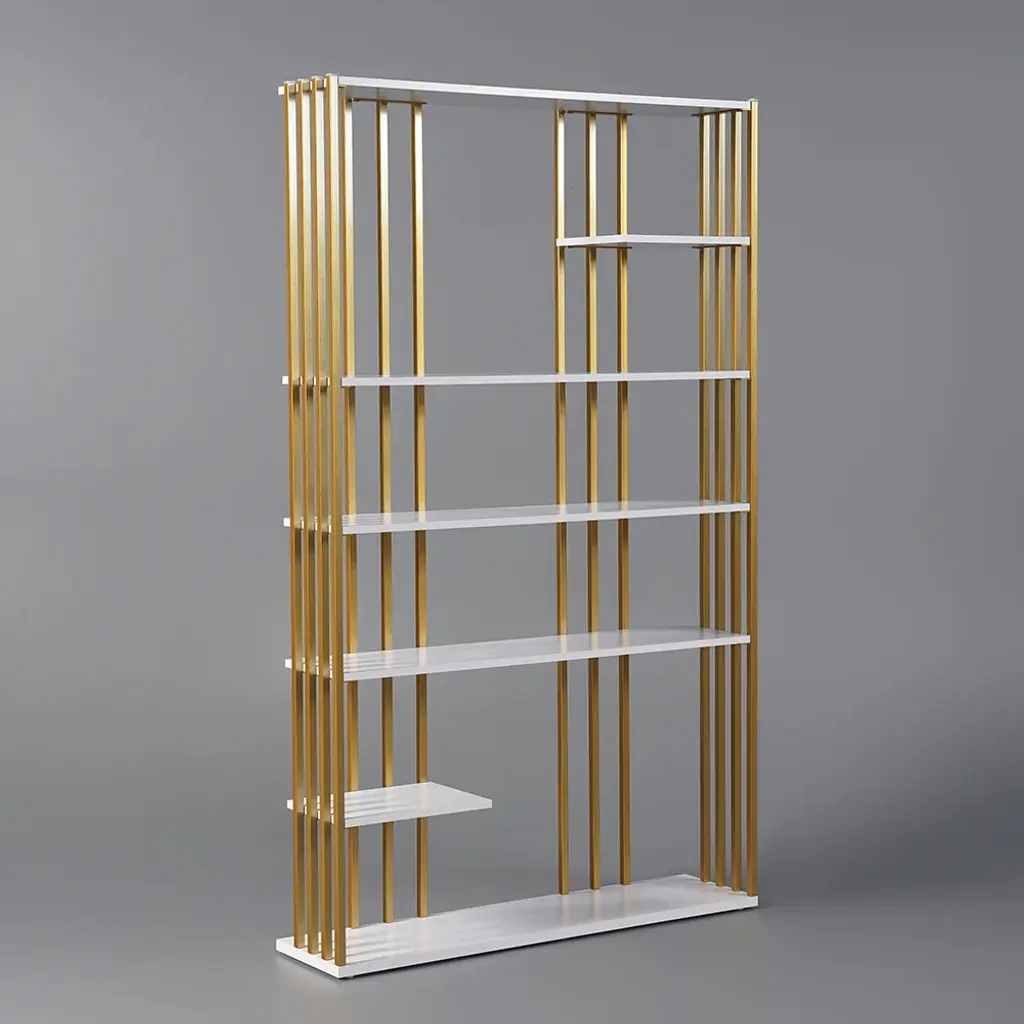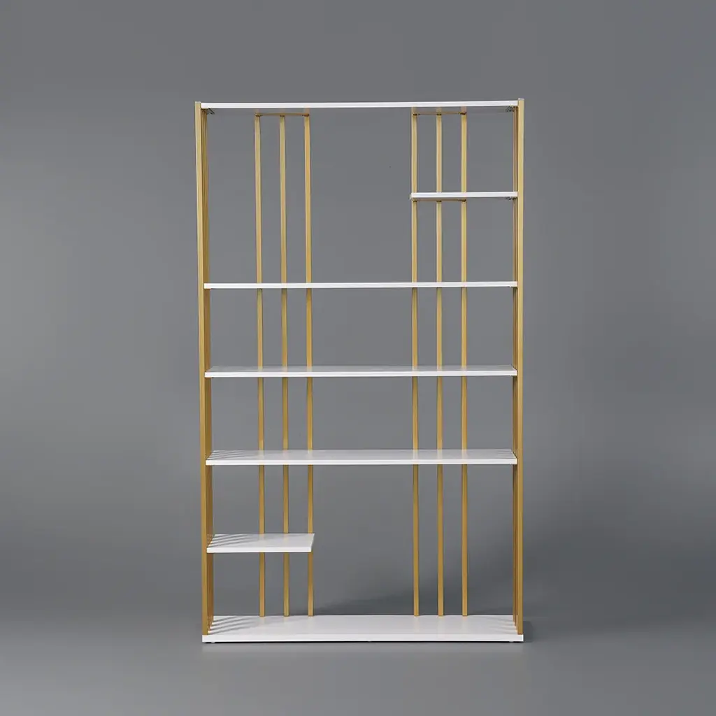 Fancy bookcase is a decorative piece that is used to organize books and collections; every tier shelf is offset to create an eye-catching asymmetrical appeal; open design allows for easy storage and display; designed to store books, photos, curios, trinkets, office essentials, and other items, it is the best choice for decorating and beautifying bedroom, den, office, and small apartment. This solid wooden bookshelf with metal combines clean design with a rustic industrial flair. Decorators will like the open shelving style since it gives ideal platforms for showcasing their creations.