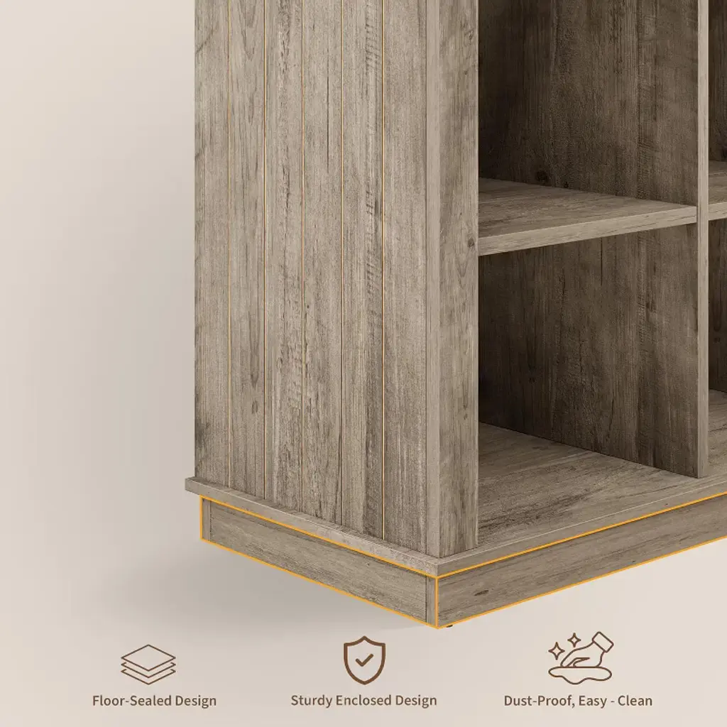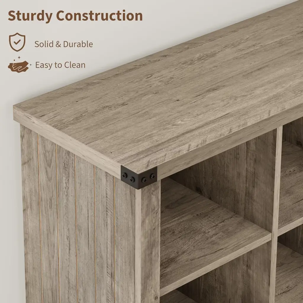 8 Cube Book Shelf, Rustic Farmhouse Wood Horizontal Bookshelf, Long Freestanding Bookcase Cabinet, 2-Tier Storage Organizer for Living Room, Entryway, Office, Grey