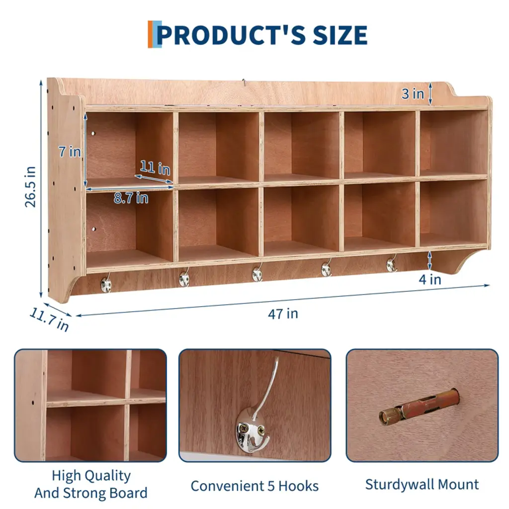 8 Cube Book Shelf, Rustic Farmhouse Wood Horizontal Bookshelf, Long Freestanding Bookcase Cabinet, 2-tier Storage Organizer For Living Room, Entryway