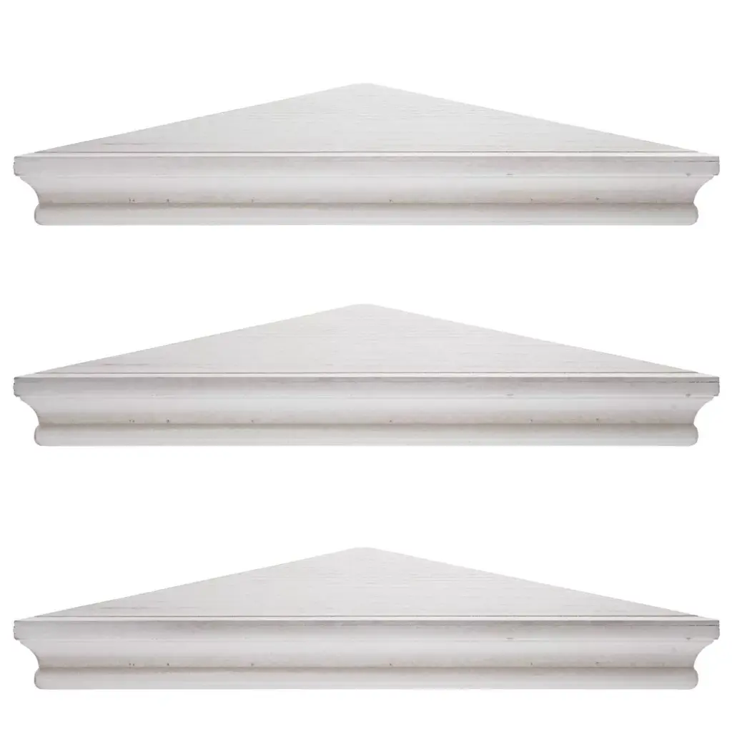 8" X 16" Set Of 3 Whitewash Wood Floating Corner Shelves White - American Art Decor: Rustic Farmhouse Mdf Storage, No Assembly Required