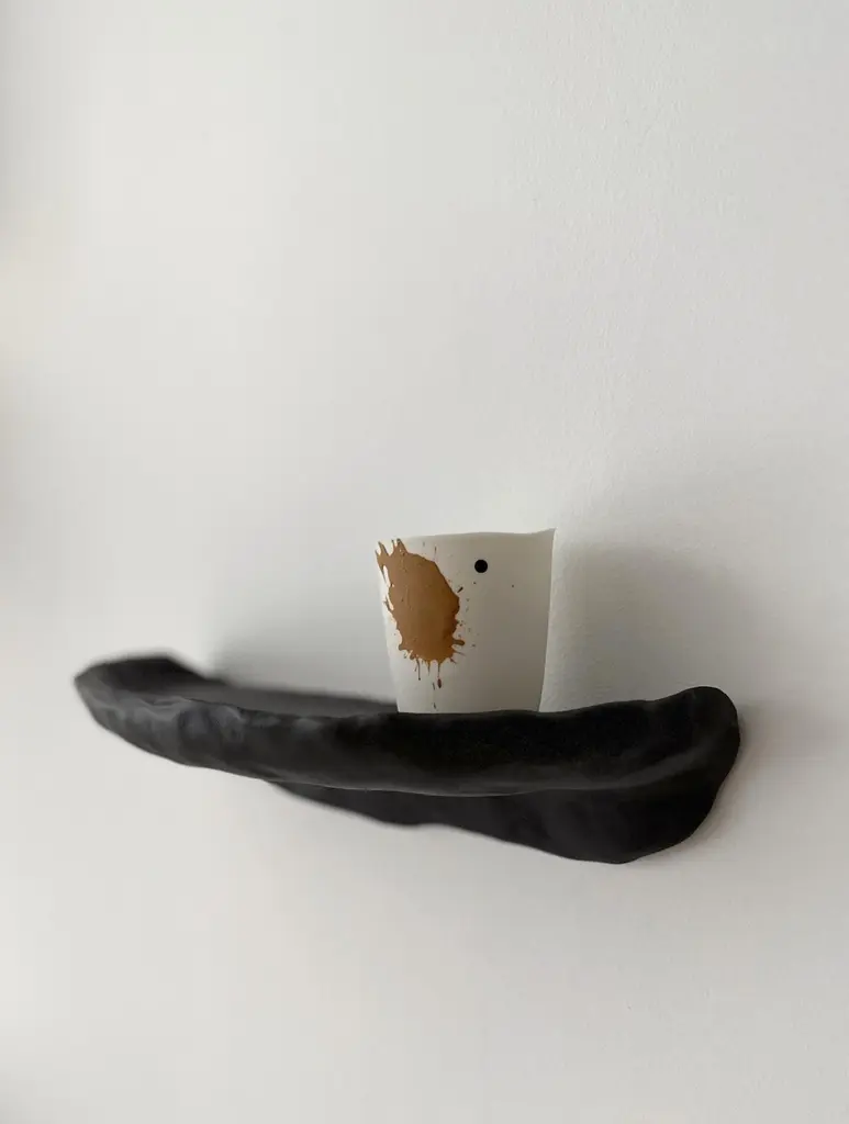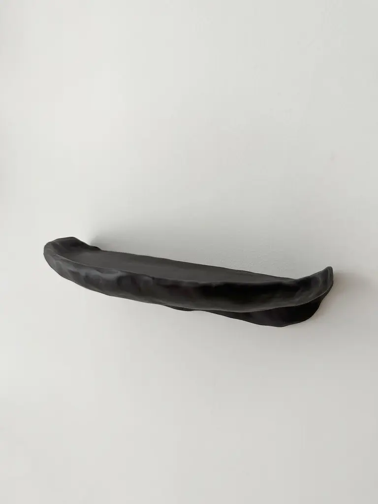Abstract Wood Little Shelf by Atelier MonochromeOne of a kind.Materials: Ceramic / Porcelain.Dimensions: D 10 x H 5 x W 25 cm.Atelier Monochrome is a space dedicated to the artisanal creation of unique porcelain pieces. The designer Myrtille Ronteix creates both custom-made pieces and collections. Among its buyers are architects, designers, boutiques and individuals. The workshop is also a meeting place, where Myrtille collaborates with ceramists, cabinetmakers, weavers, and all sorts of other artists and artisans. The designer designs collections of flowers and jewelry, wall installations and various accessories for tableware, produced in limited series according to her inspiration. Between strength and subtlety, minimalism and refinement, his creations have a refined aesthetic, a signature recognizable at first glance. Inspiration If nature is at the heart of her work, she is also greatly inspired by Scandinavian design, Japanese purity, as well as the refinement and poetry of the Italian Renaissance. During her stay in the United Arab Emirates, she discovers the heritage of the land, the fauna, the deserts and the mountains. There she meets Bedouins and learns from these women who perpetuate traditions while striving to preserve their knowledge.The technique Porcelain is a clay rich in kaolin whose whiteness and translucency give it a most contemporary charm. Mineral and sensual material, it is an inexhaustible source of inspiration for this artist.Myrtille works the land like a graphic designer works on a blank page; folds, cuts, embosses, applies patterns and adds natural materials such as wood or more sophisticated materials such as gold and precious stones. She likes to combine ancestral craftsmanship with current techniques such as laser cutting or 3D printing.Each piece is made by hand in the pure tradition of luxury craftsmanship.