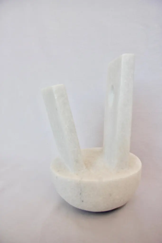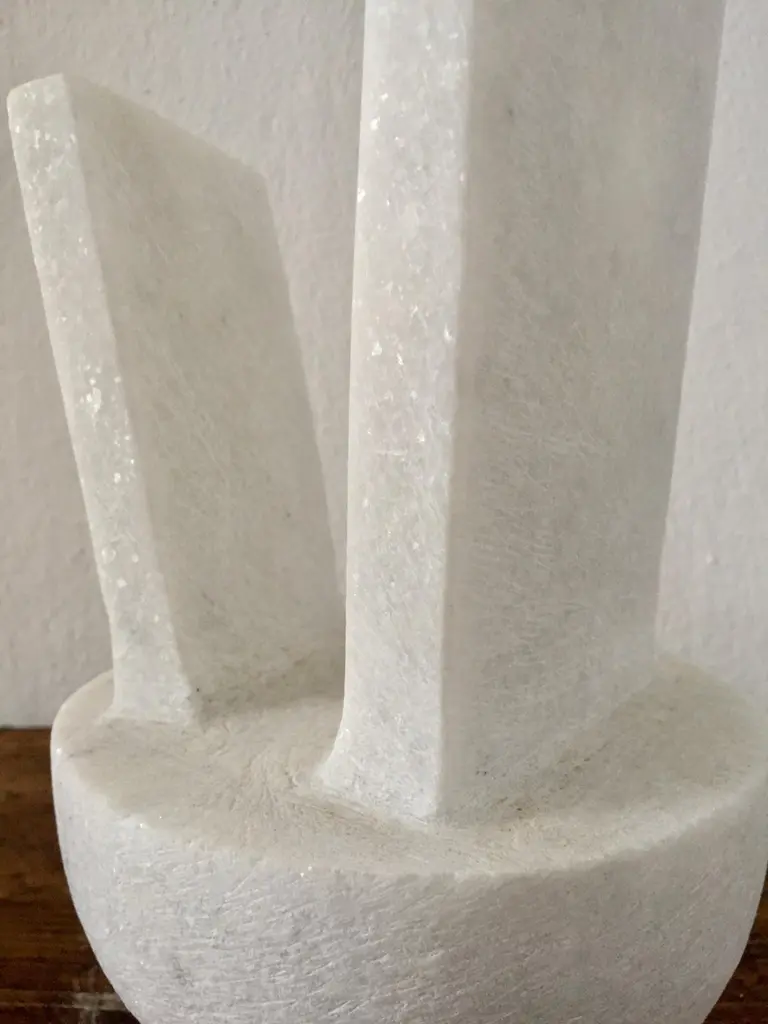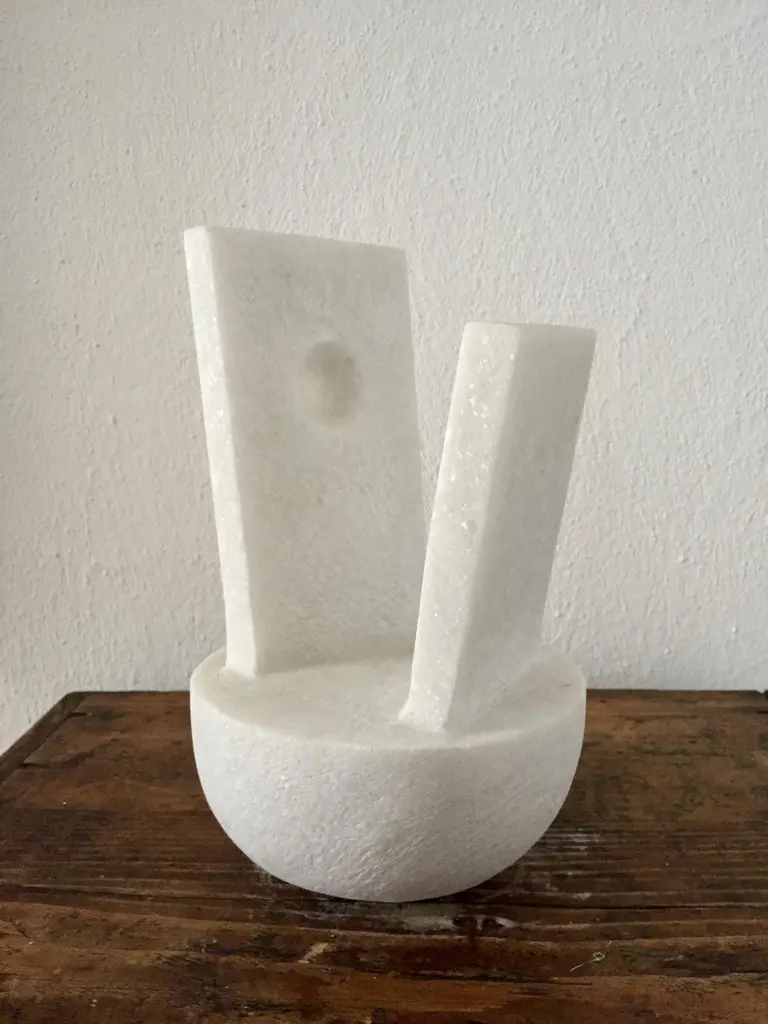 Minoan - Naxian marble shelf sculpture - Tom von KaenelDimensions: height 24.5 cm / diameter 15 cmunique artwork signed by Tom von KaenelRare Naxian marbleAll the artworks of Tom von Kaenel are unique, handcrafted by himself.The stones all come from the surrounding marble quarries of the island. The Naxian marble is of white, grey or yellow-brown color, its structure is crystalline. No measuring instruments other than compasses and scales are used in the production of an object. The eye decides on the finalshape. The crystalline surfaces are shimmering. This gives the object a unique liveliness.Tom von Kaenel, sculptor and painter, was born in Switzerland in 1961. Already in his earlychildhood he was deeply devoted to art. His desire to bring beauty to the world is Tom vonKaenel’s inspiration, drive and source for the creation of his works.Already during his training as a technical draughtsman and later as a teacher of pictorial design, he devoted himself to painting and three-dimensional work. Tom von Kaenel has exhibited his work in various solo and group exhibitions. For seven years he was represented by Galerie Ute Barth in Zurich.Today Tom von Kaenel lives and works on the island of Naxos. Everything in his environment inspires and shapes his work. He creates objects and sculptures out of Naxian marble in craftsmanship liveliness and timeless beauty.