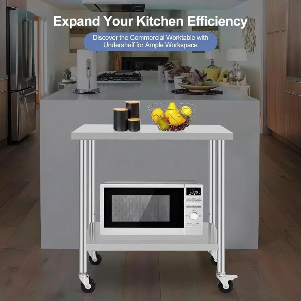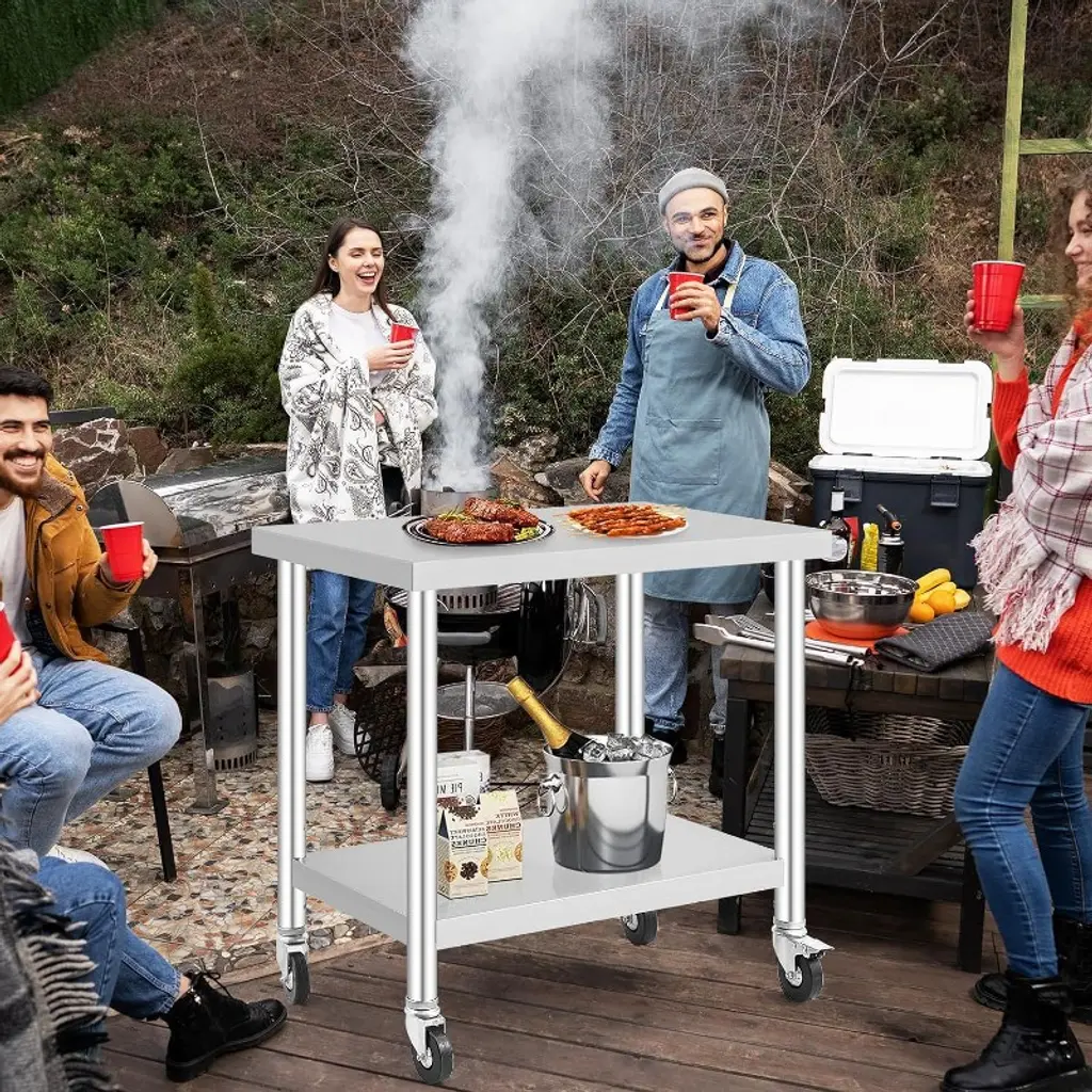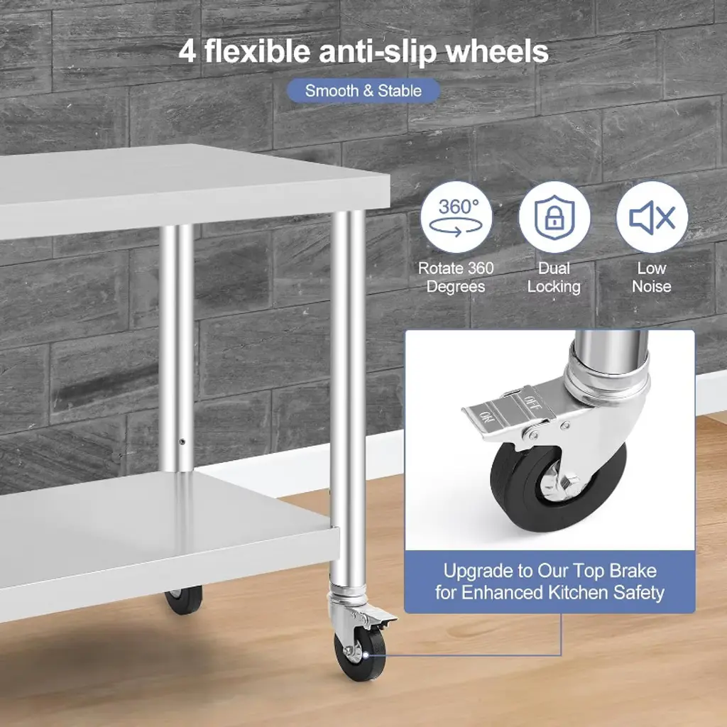 Acekool 30" Mobile Prep Table – Stainless Steel Workstation With Locking Wheels & Adjustable Shelf For Kitchen & Commercial Use