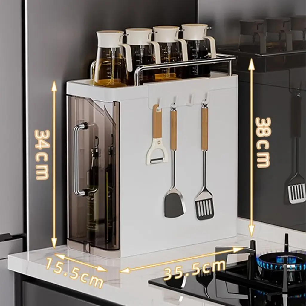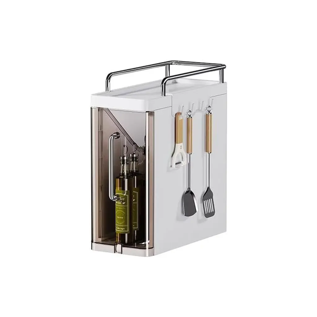 Acekool Kitchen Spice Rack With 1 Drawers And Hooks – Waterproof Plastic Shelf Organizer For Spice Jars And Kitchen Storage