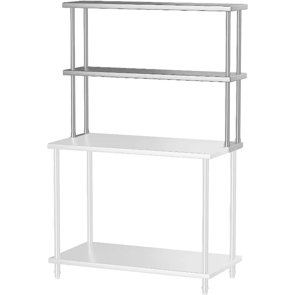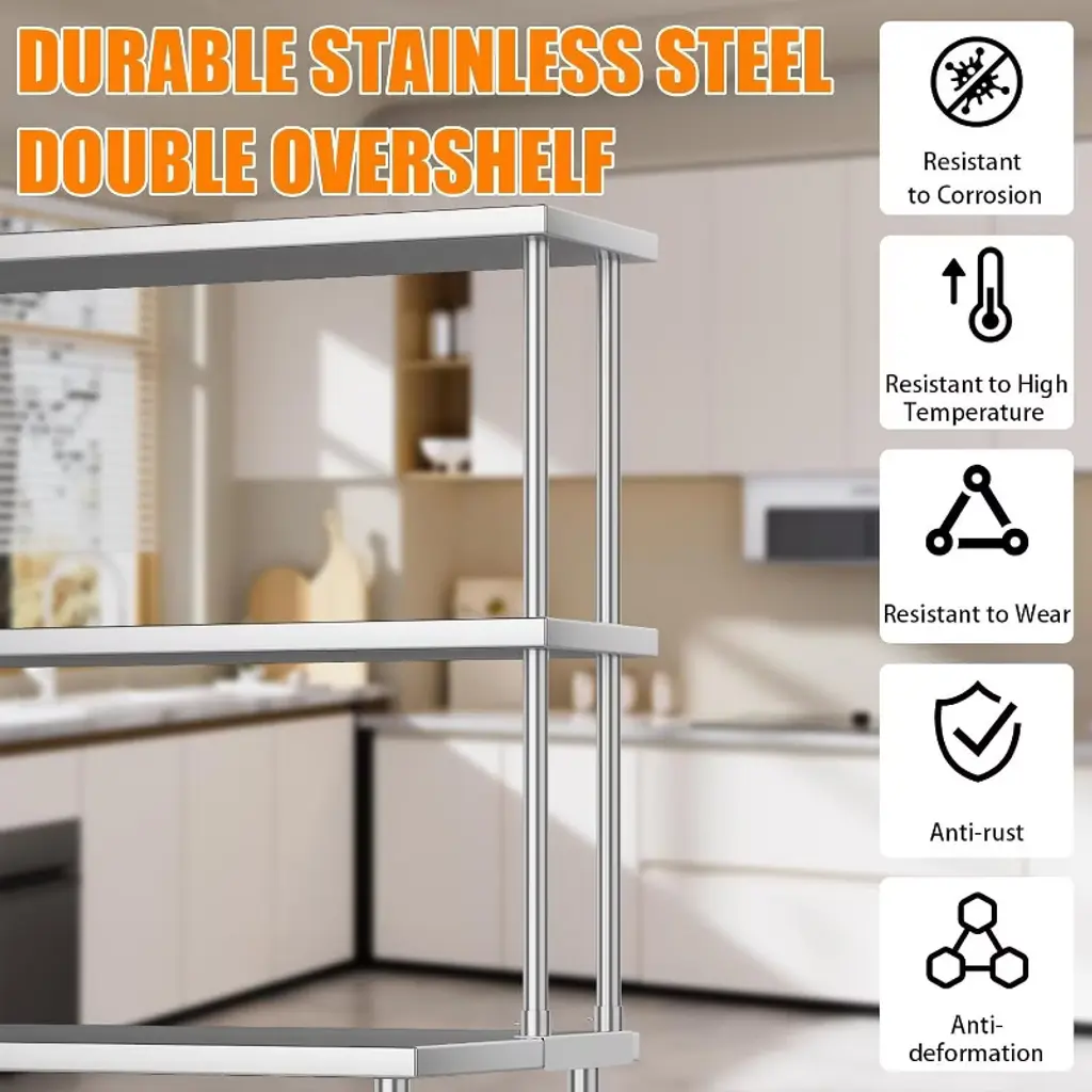 Acekool stainless steel work table brings professional-grade function and modern style to kitchens, restaurants, laundry rooms, and workshops. The large tabletop and adjustable under shelf create ample room for food preparation, serving, sorting, or project assembly. Keep appliances, cookware, or supplies close at hand with flexible lower storage, while the spacious surface handles mixing or chopping with ease.A raised backsplash protects walls and floors by containing splashes and spills. Four caster wheels make shifting the table between rooms or work zones effortless; lock two of the wheels for steady performance during busy tasks. Rounded edges and a smooth finish improve safety, while adjustable feet help the worktable sit evenly on different surfaces.Acekool offers this table in a range of sizes: choose from 12x30in, 12x36in, or 12x48in (all 99cm high) for compact areas, or pick 30x24in, 36x24in, or 48x24in (140cm high with double shelves) for large kitchens or multiple uses. Whether as a kitchen island, laundry folding station, grill stand, or restaurant prep area, this table fits a wide variety of spaces and tasks. Easy to assemble and clean, it delivers practical function and versatile style for everyday work or special projects.